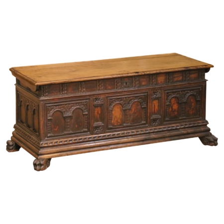 • Mid-18th Century Italian Baroque Carved Walnut Cassone Blanket Chest