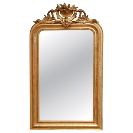 • 19th Century French Louis Philippe Giltwood Arched Mirror with Floral Crest