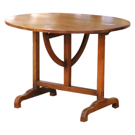 • 19th Century French Walnut Oval Tilt-Top Wine Tasting Table with Lyre-Form Base