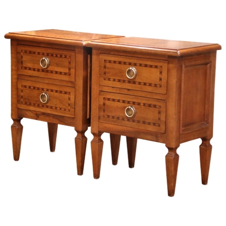 • Pair of 20th C. Louis XVI Style Inlaid Walnut Nightstands with Parquetry Detail
