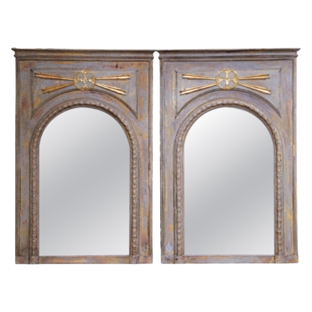 Pair of Early 20th Century French Louis XVI Revival Painted Wall Trumeau Mirrors