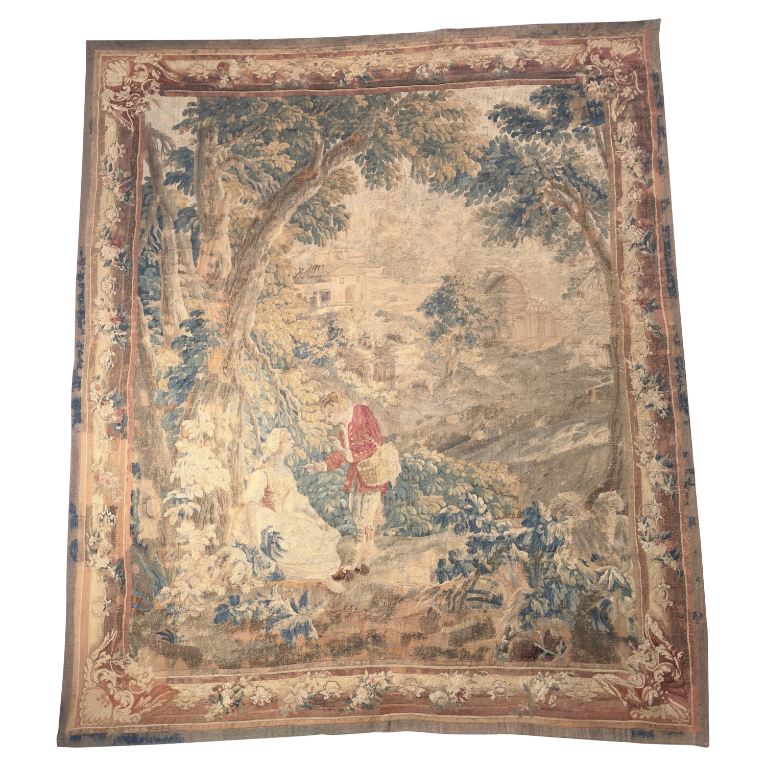 18th Century French Aubusson Pastoral Tapestry Attributed to Jean Baptiste Huet