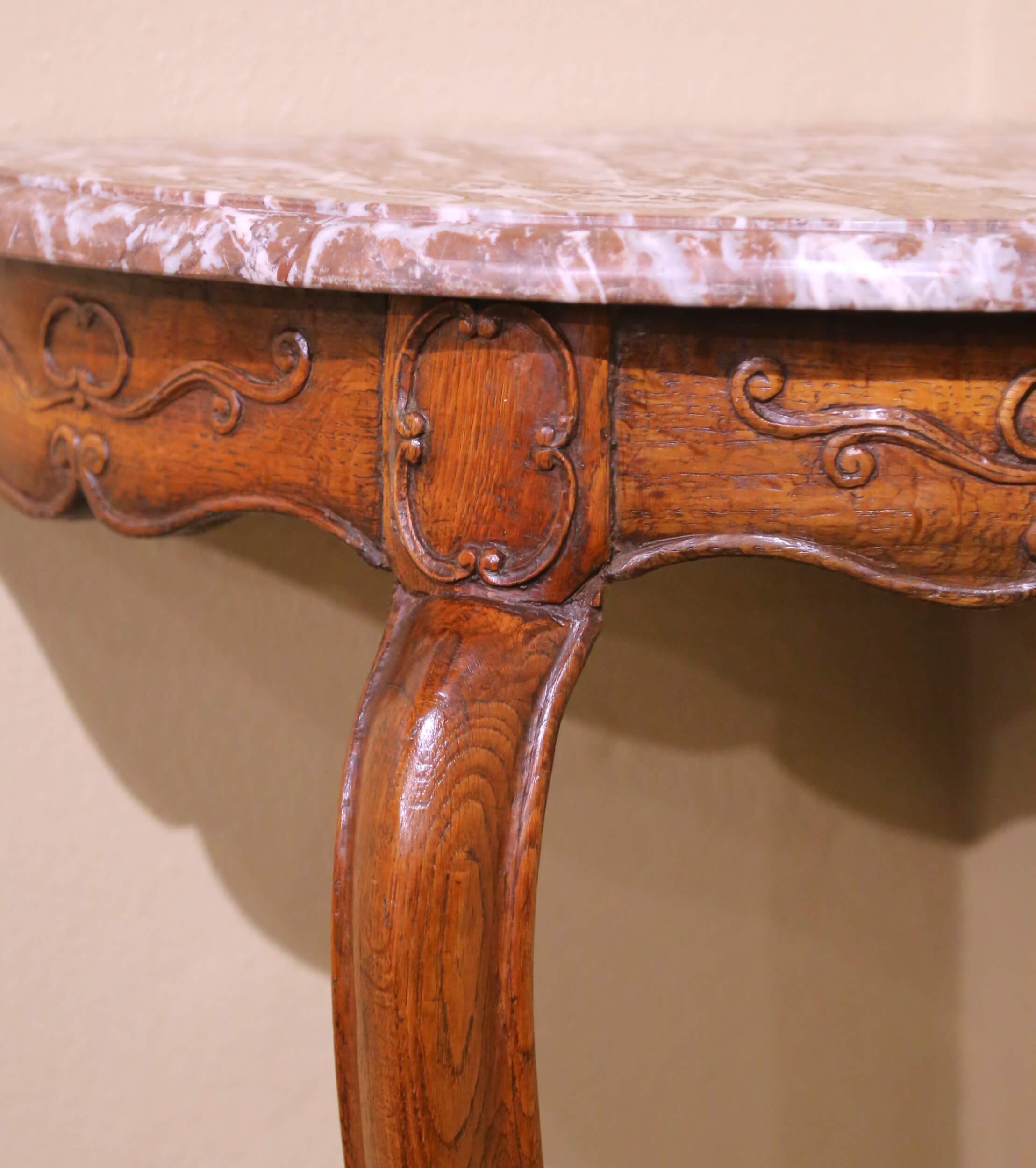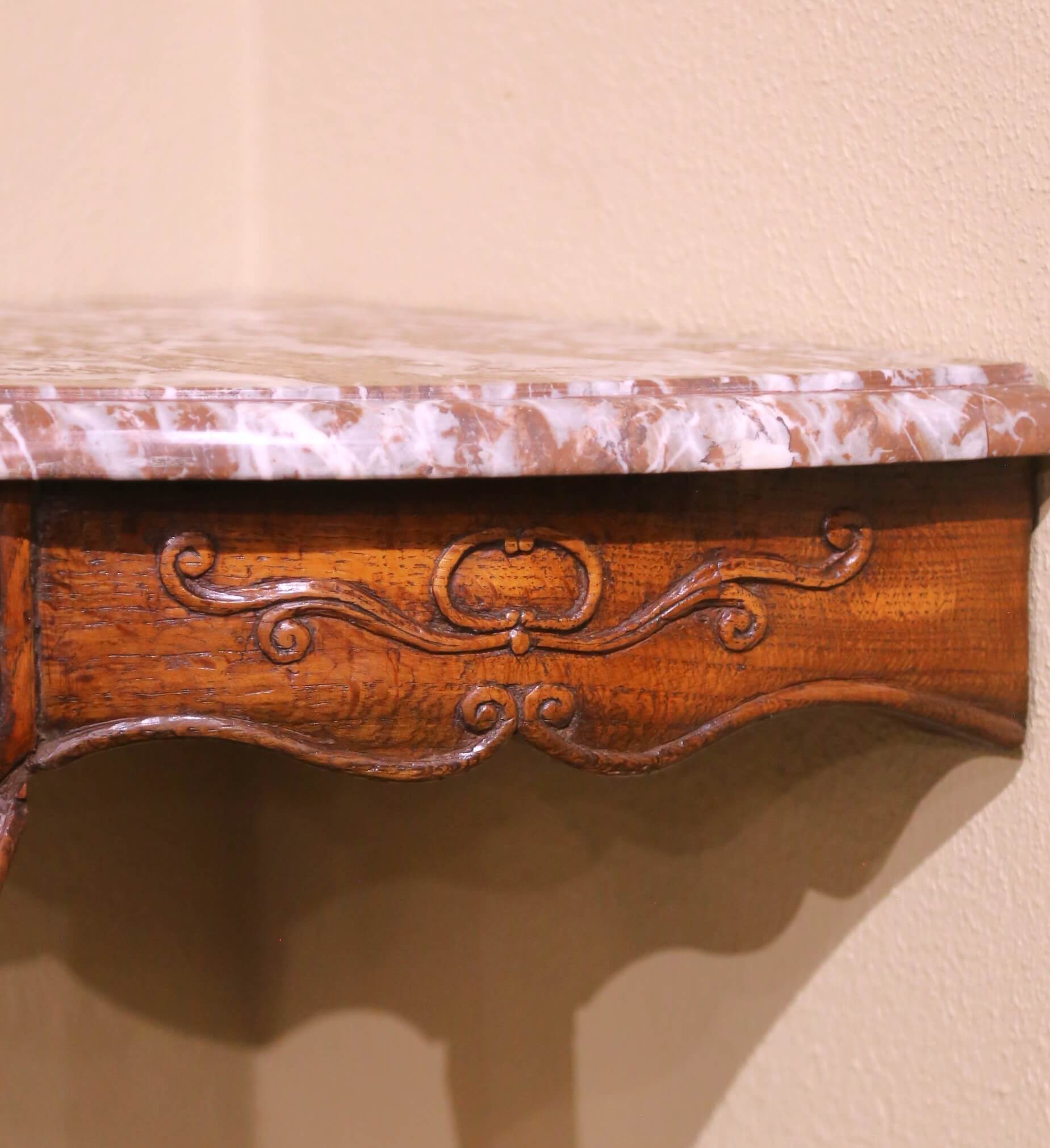18th Century French Louis XV Oak Corner Console with Marble Top