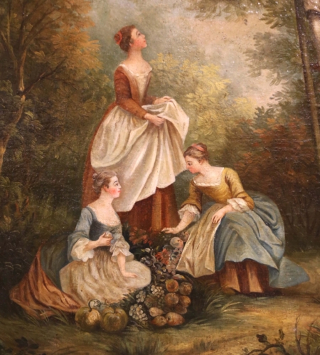 18th Century French Oil on Canvas Painting “Pear Picking” After François Boucher