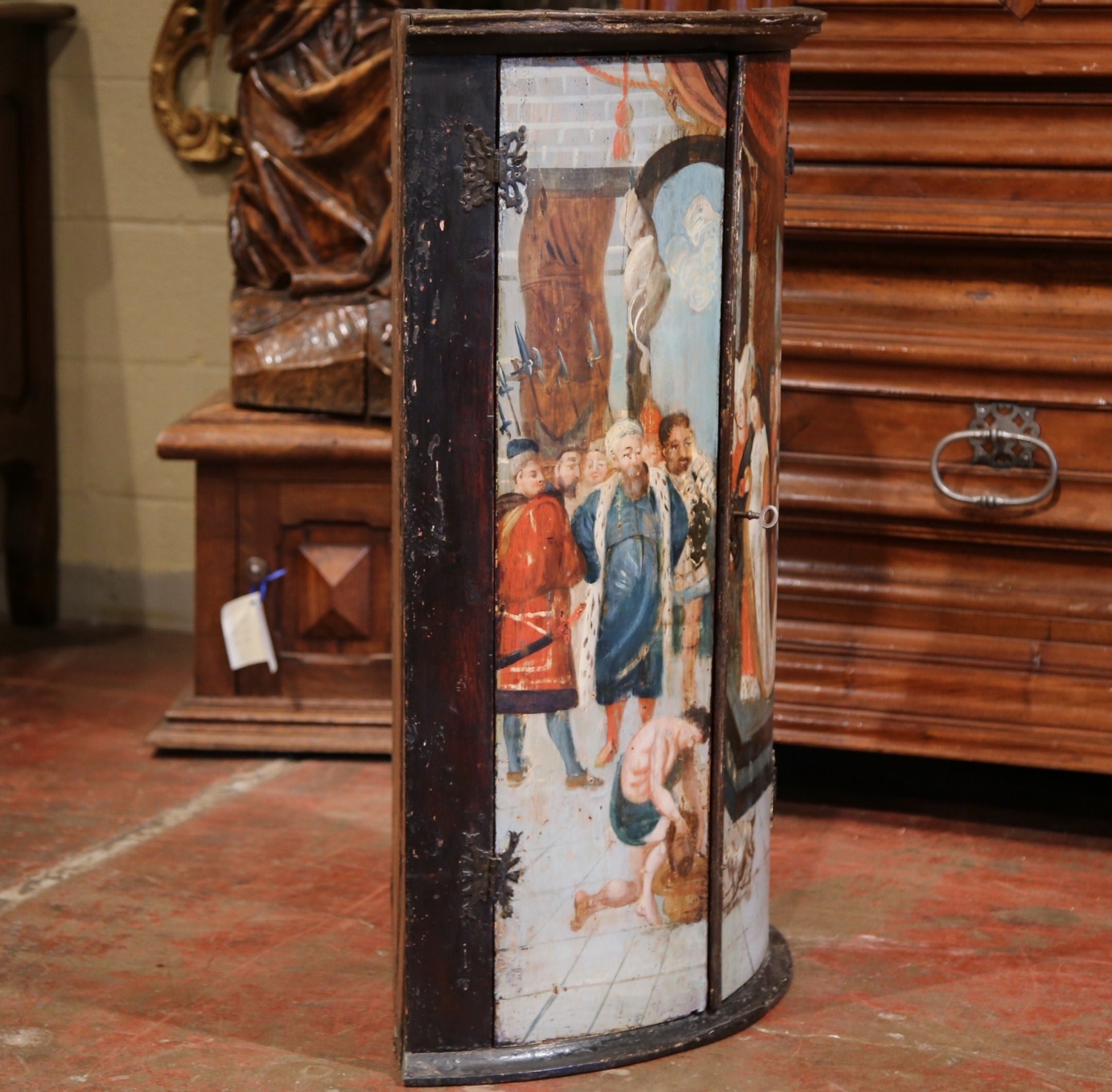18th Century Italian Painted Corner Cabinet Depicting Saint John the Baptist