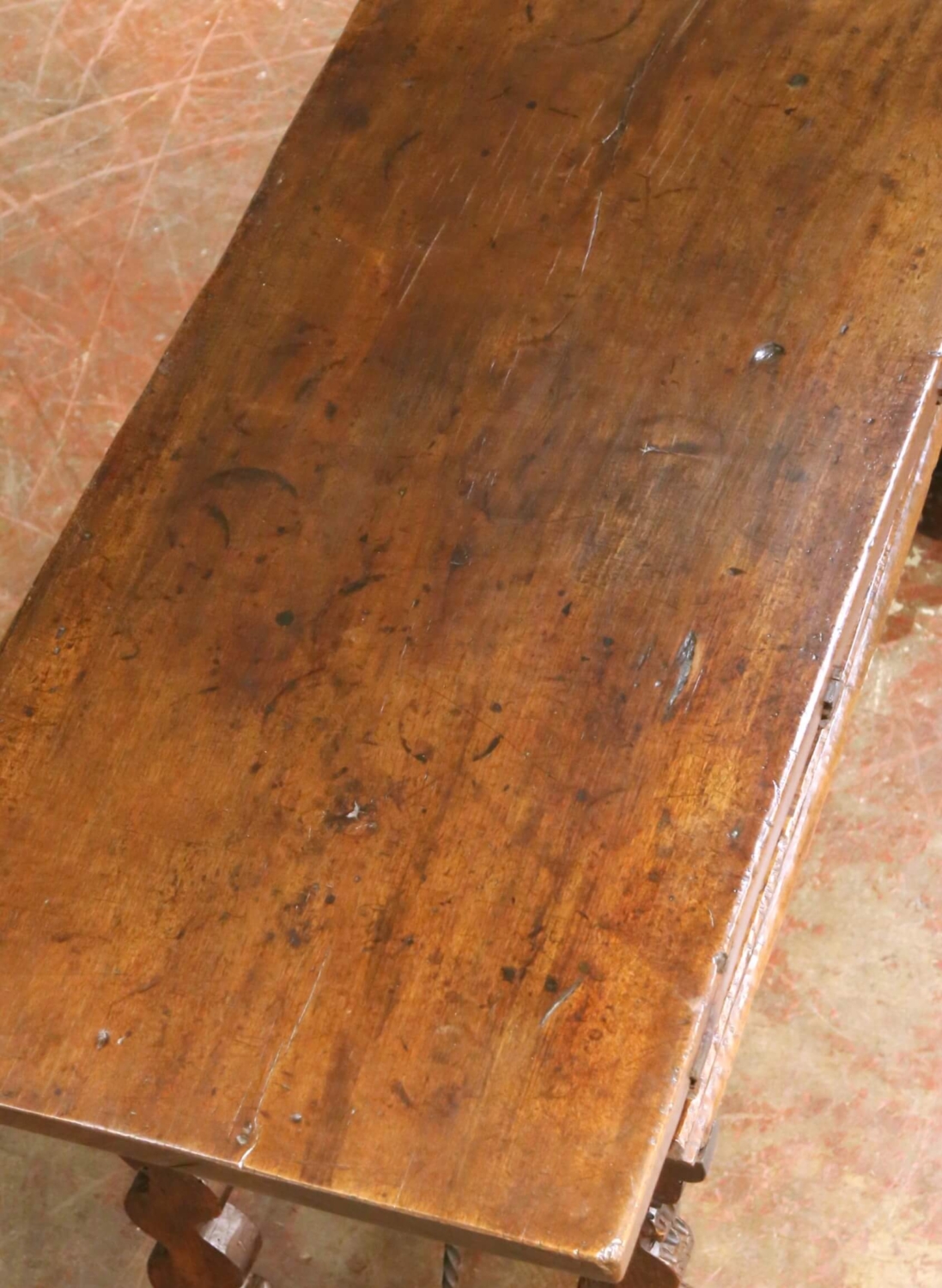 18th Century Spanish Carved Walnut Desk with Single Plank Top and Three Drawers