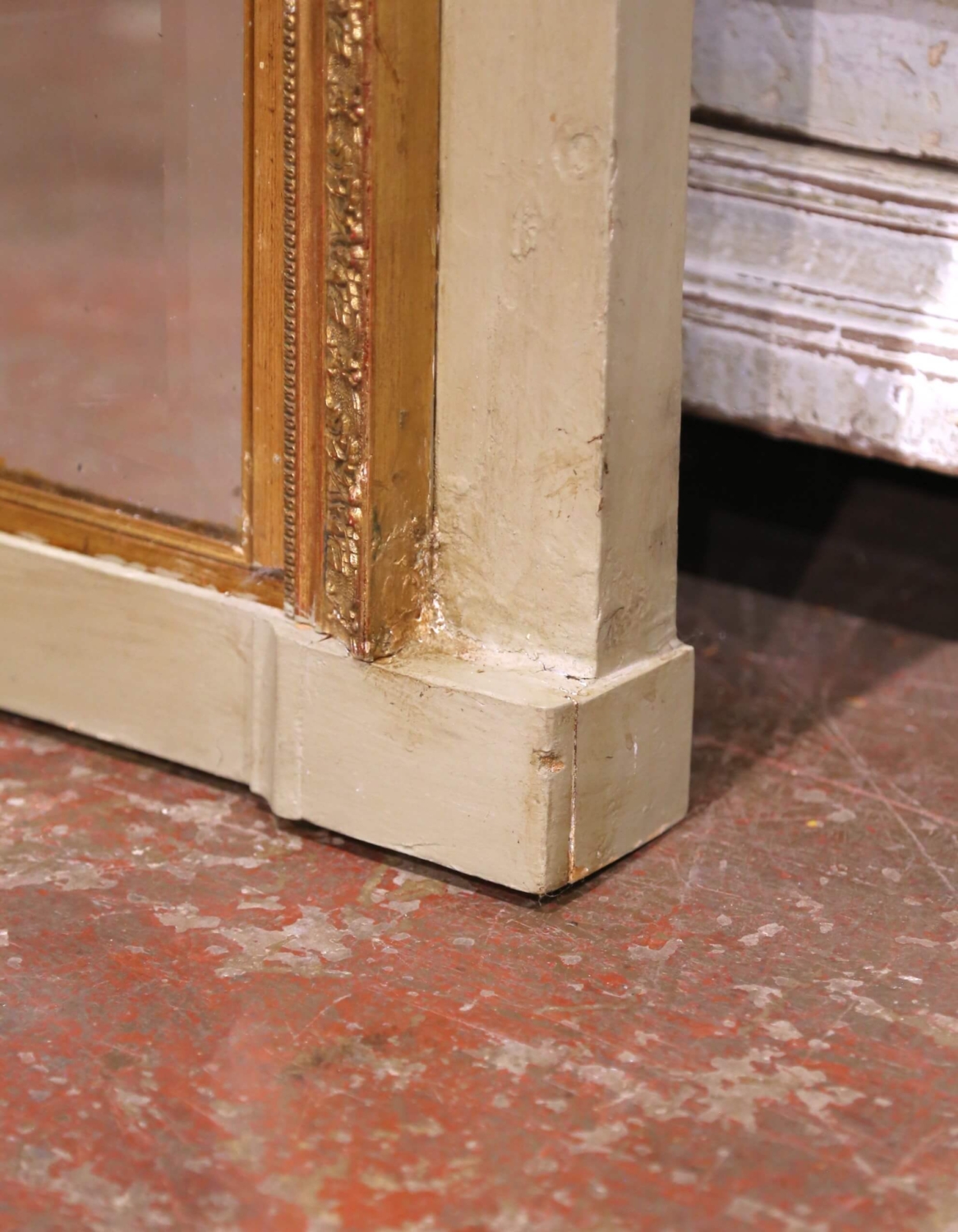 19th C. French Louis XVI Painted and Gilt Trumeau Mirror with Beveled Glass