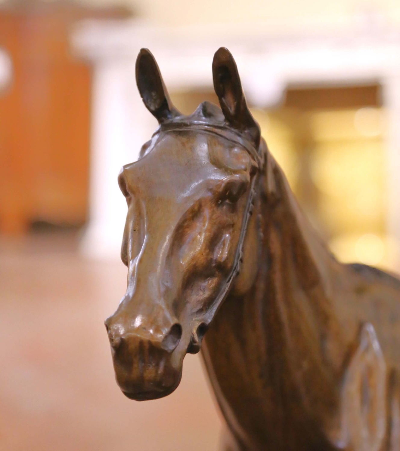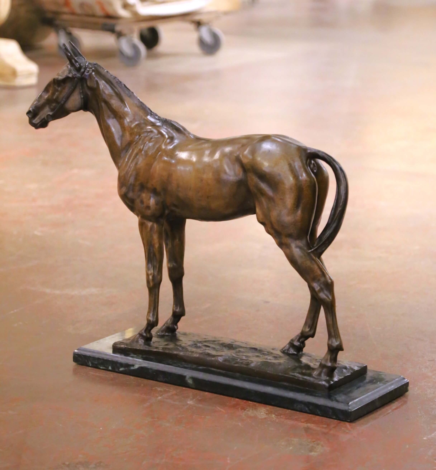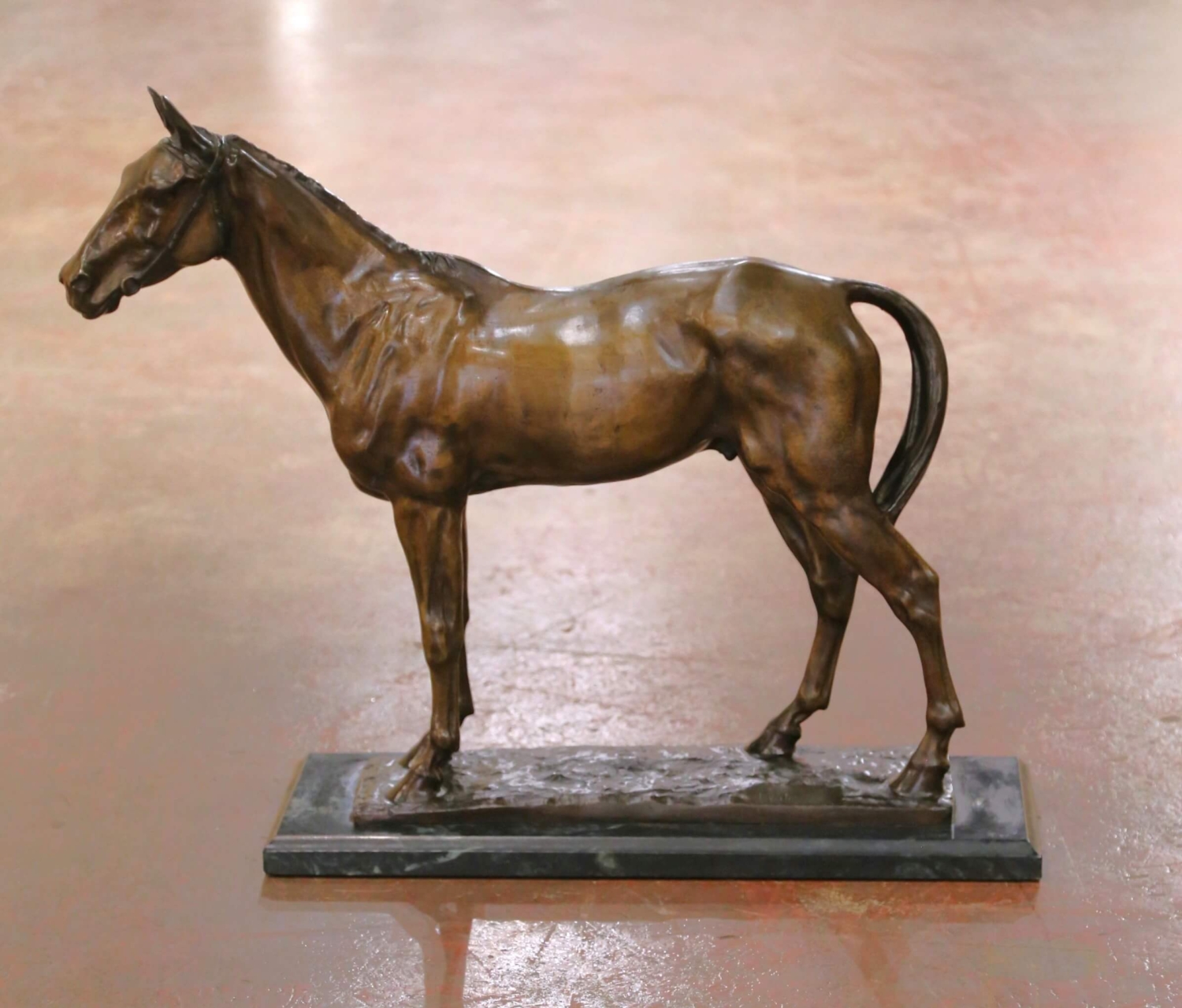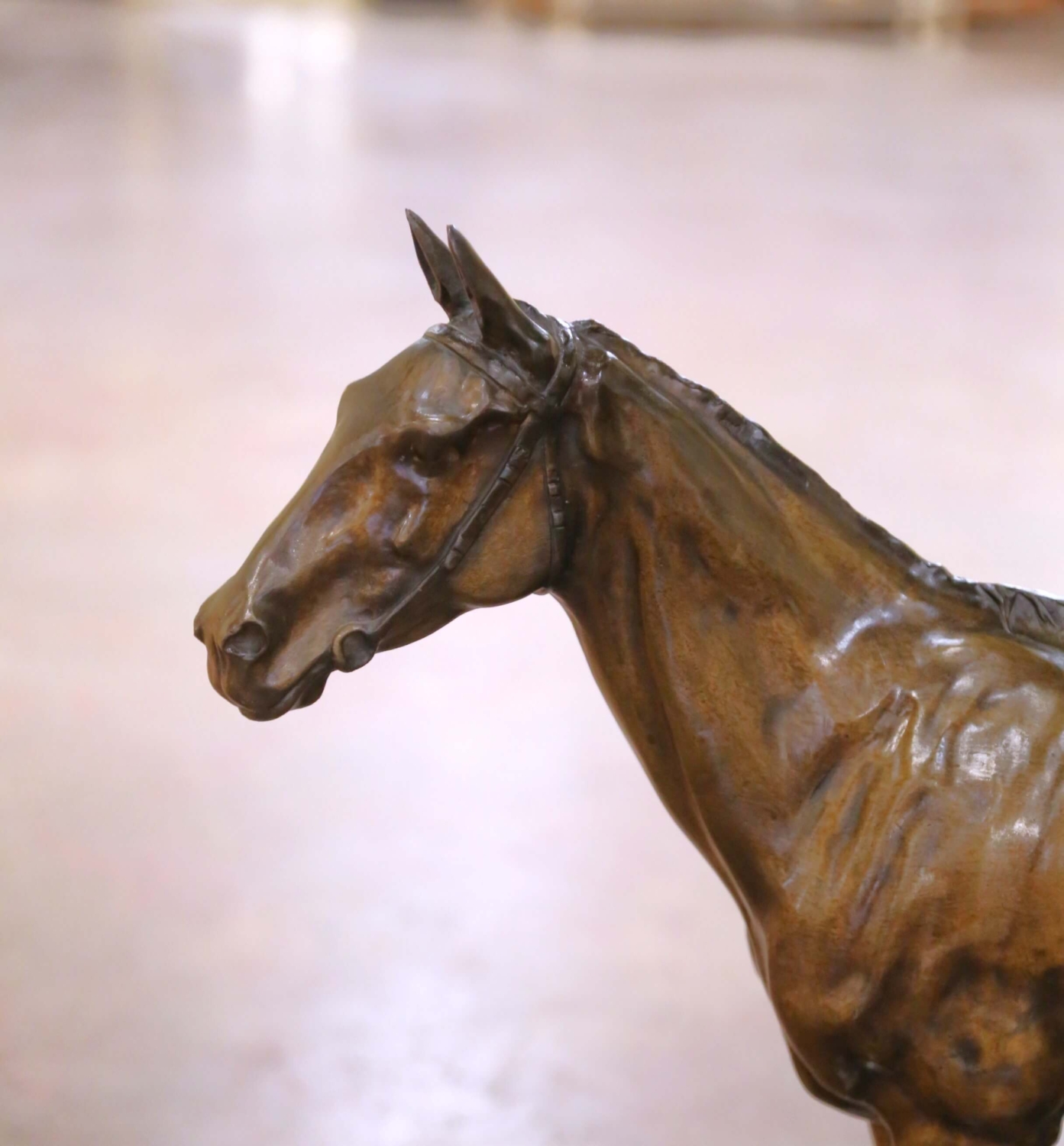 19th C. French Patinated Bronze Horse Sculpture on Marble Base Signed C. Fratin