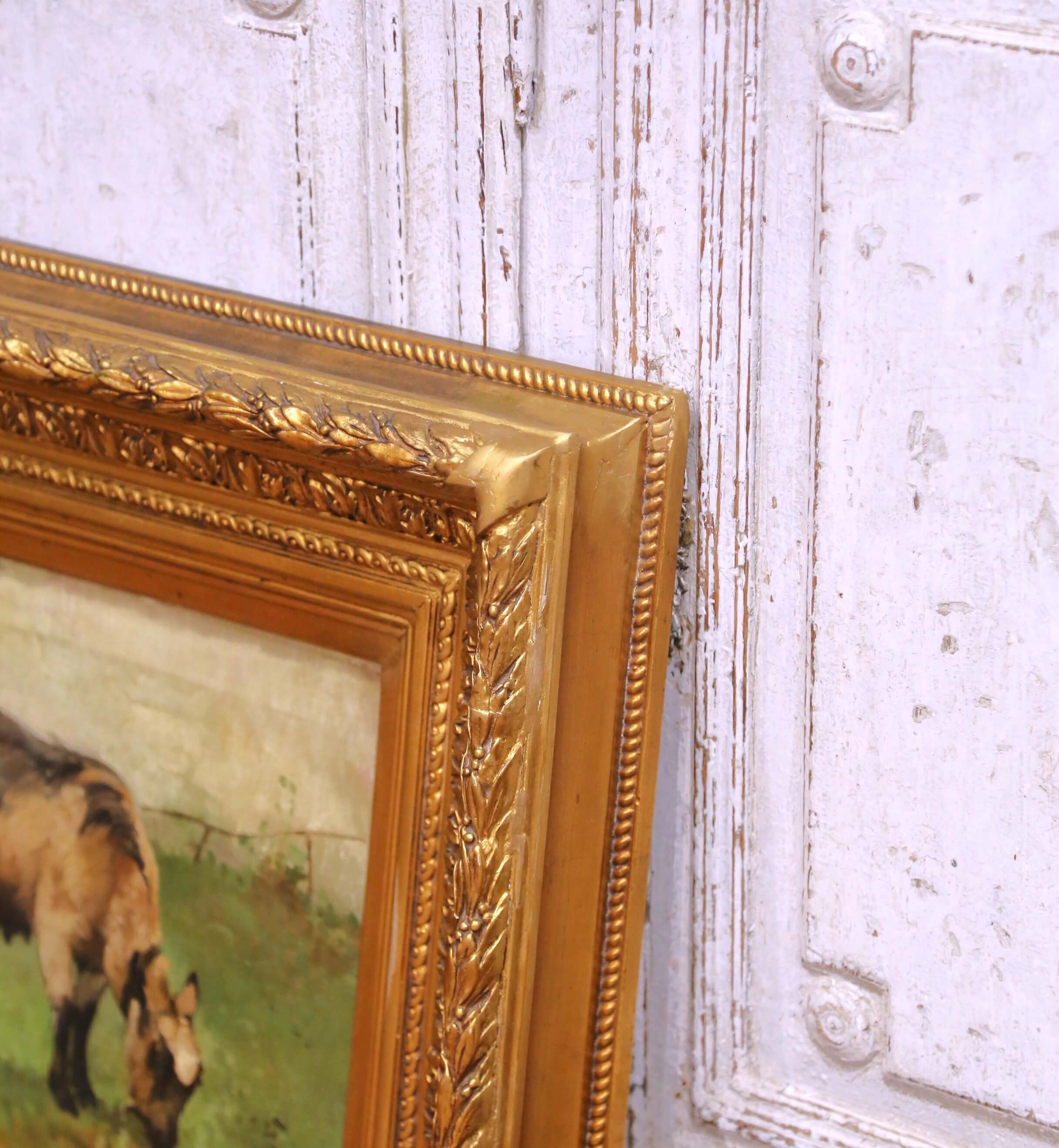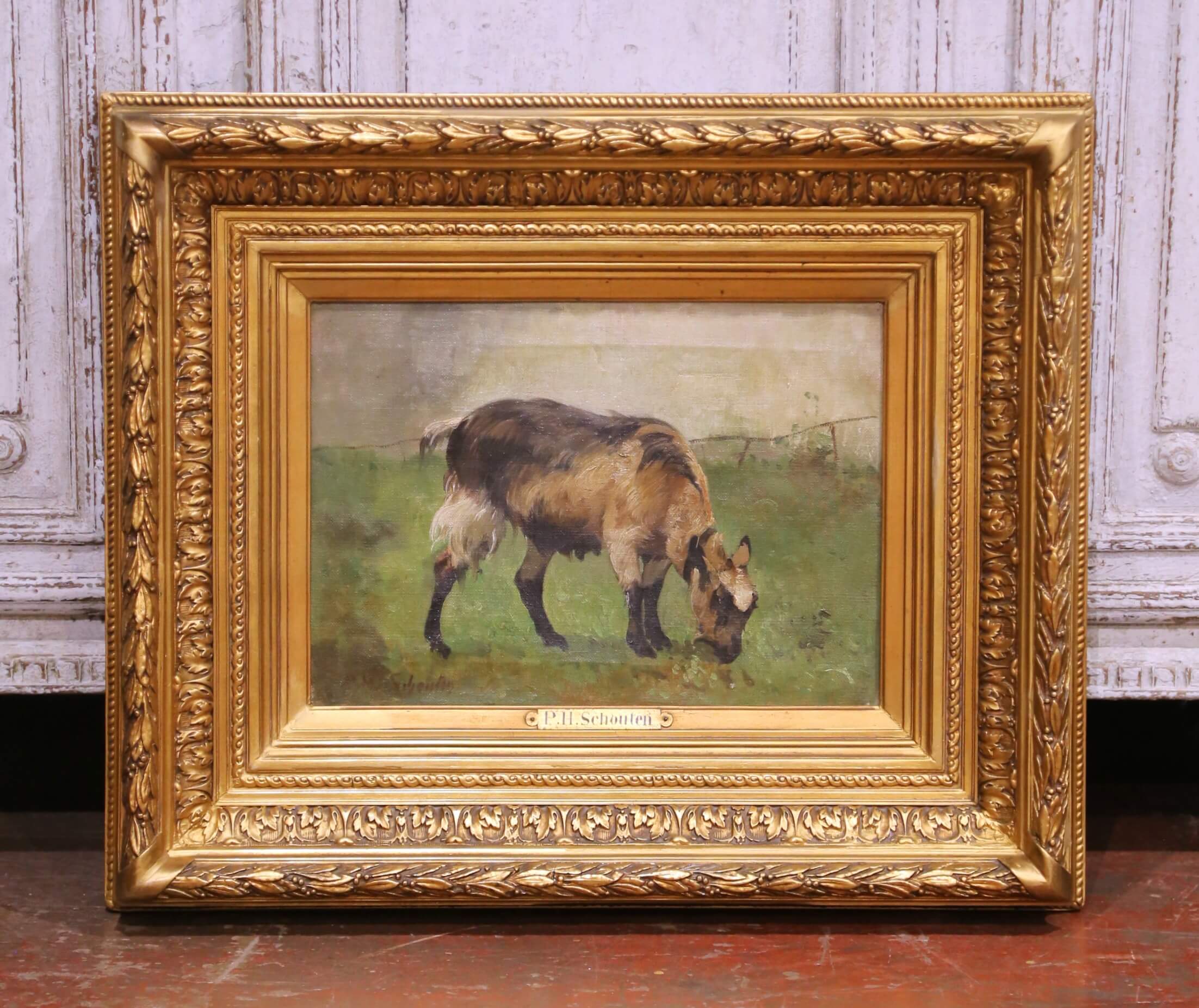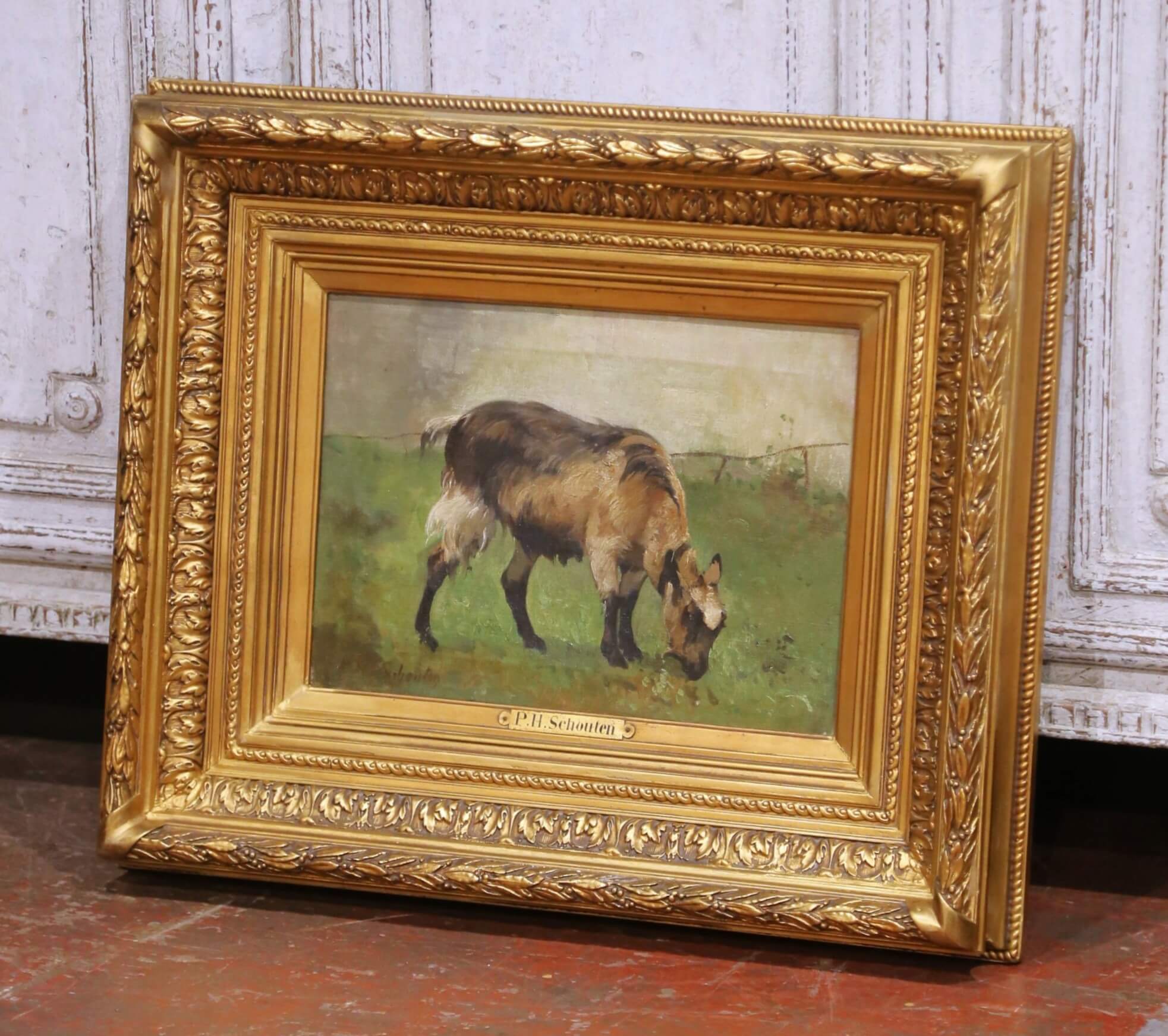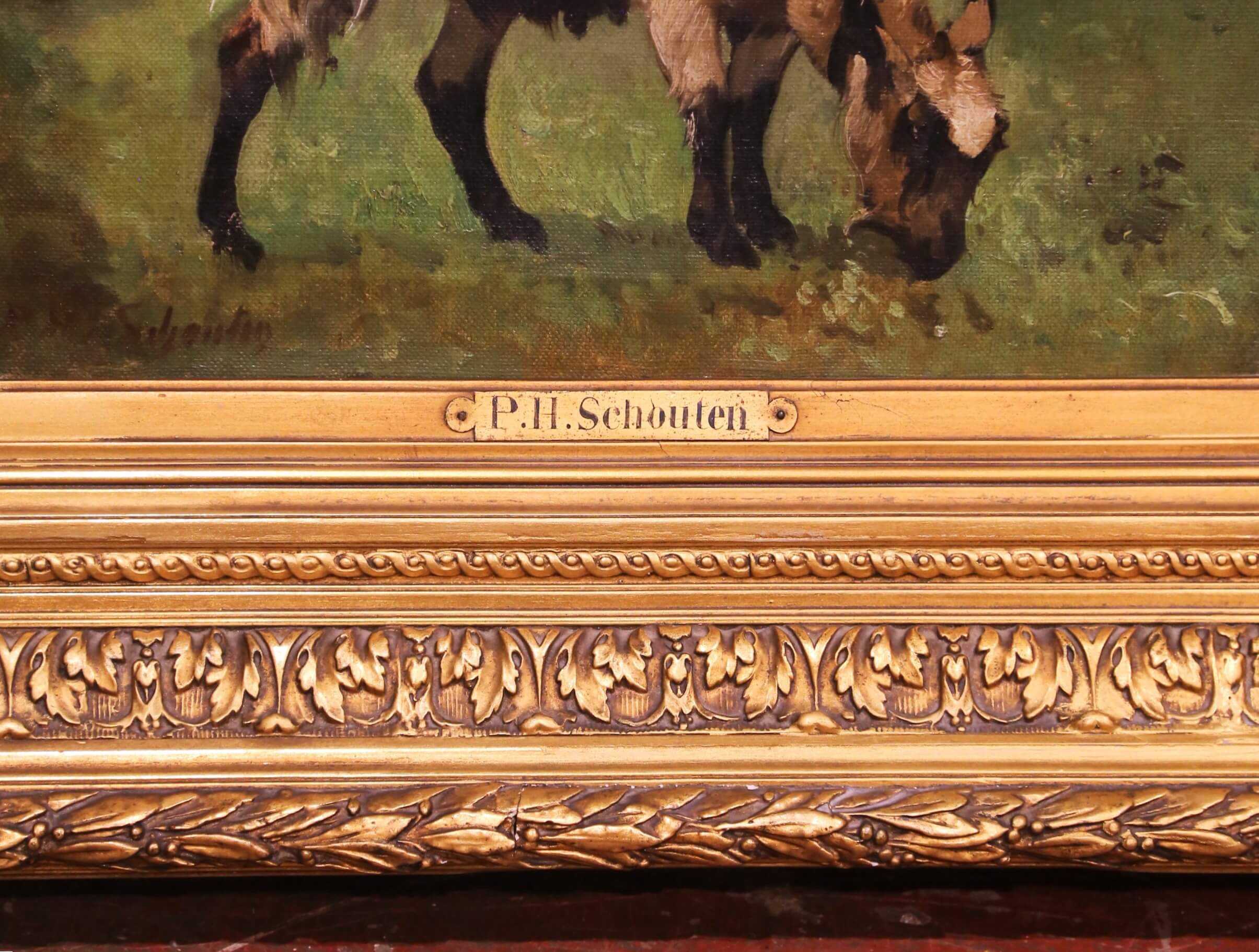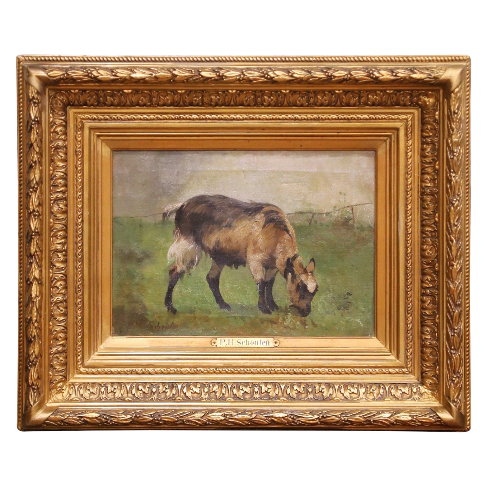 19th Century Belgian Animal Oil Painting in Gilt Frame Signed Paul H. Schouten