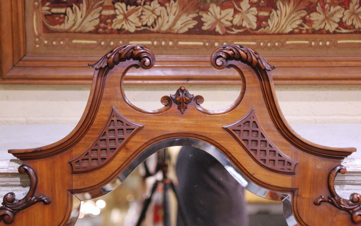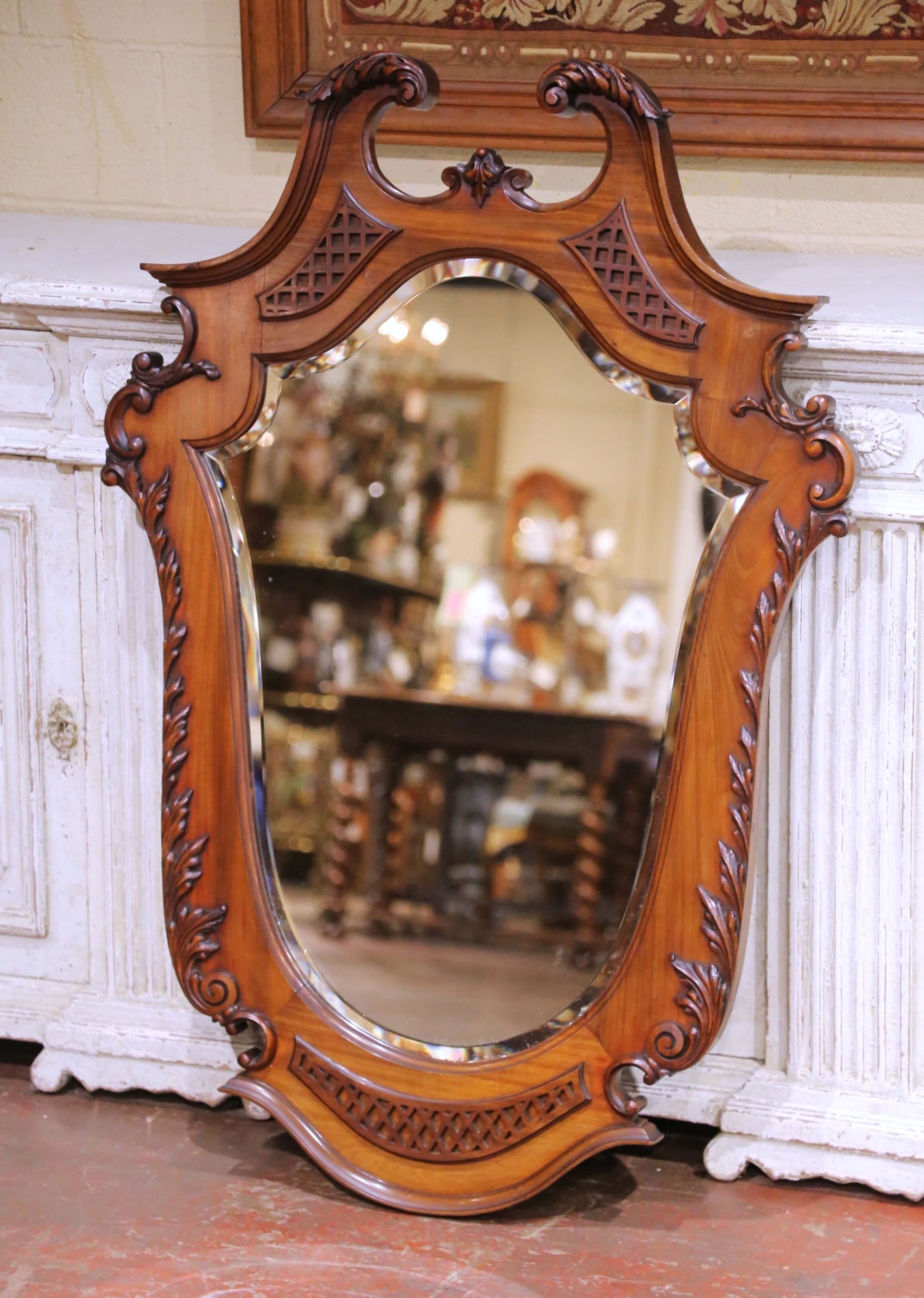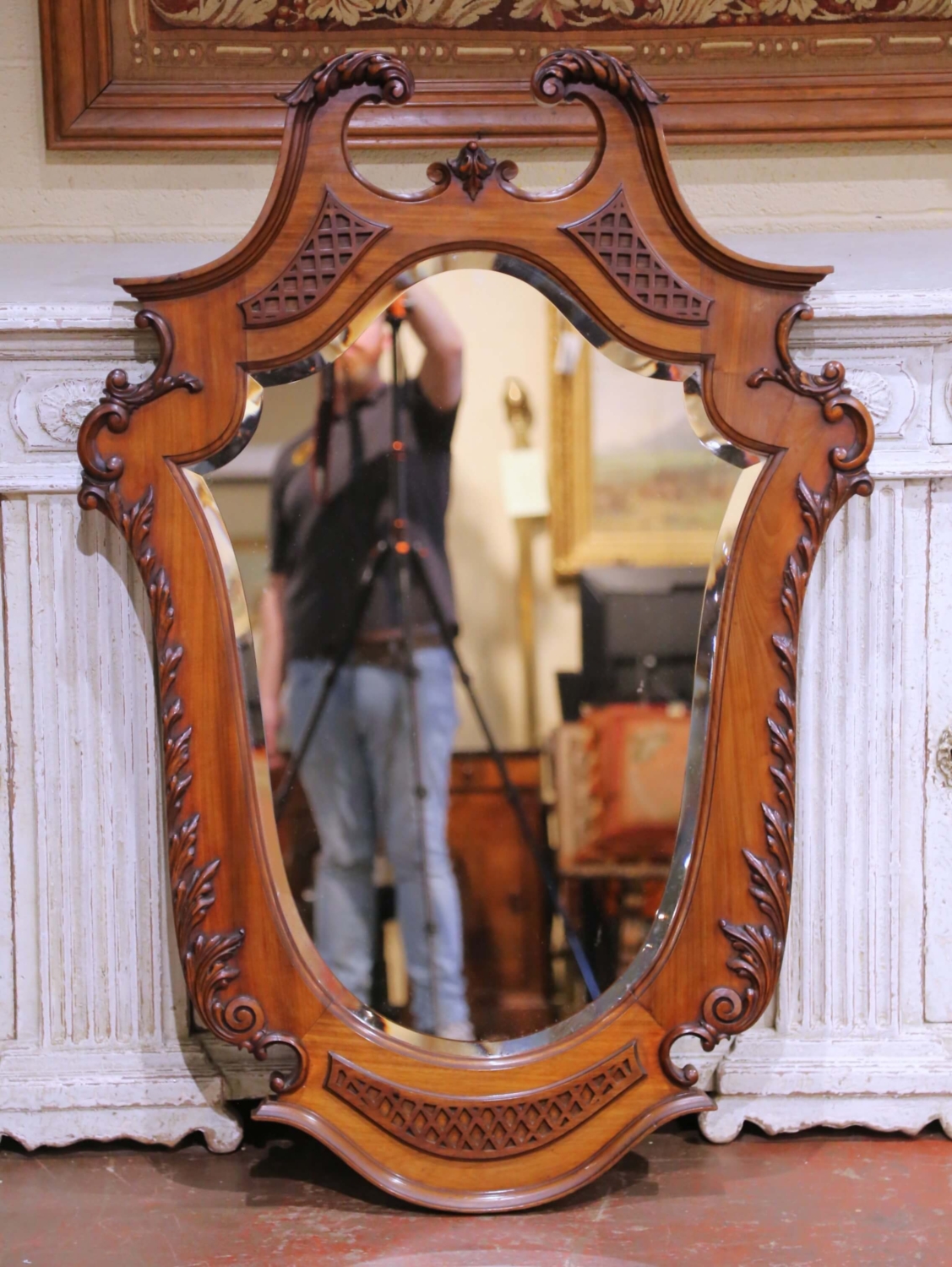 19th Century English Rococo Carved Walnut Wall Mirror with Beveled Glass
