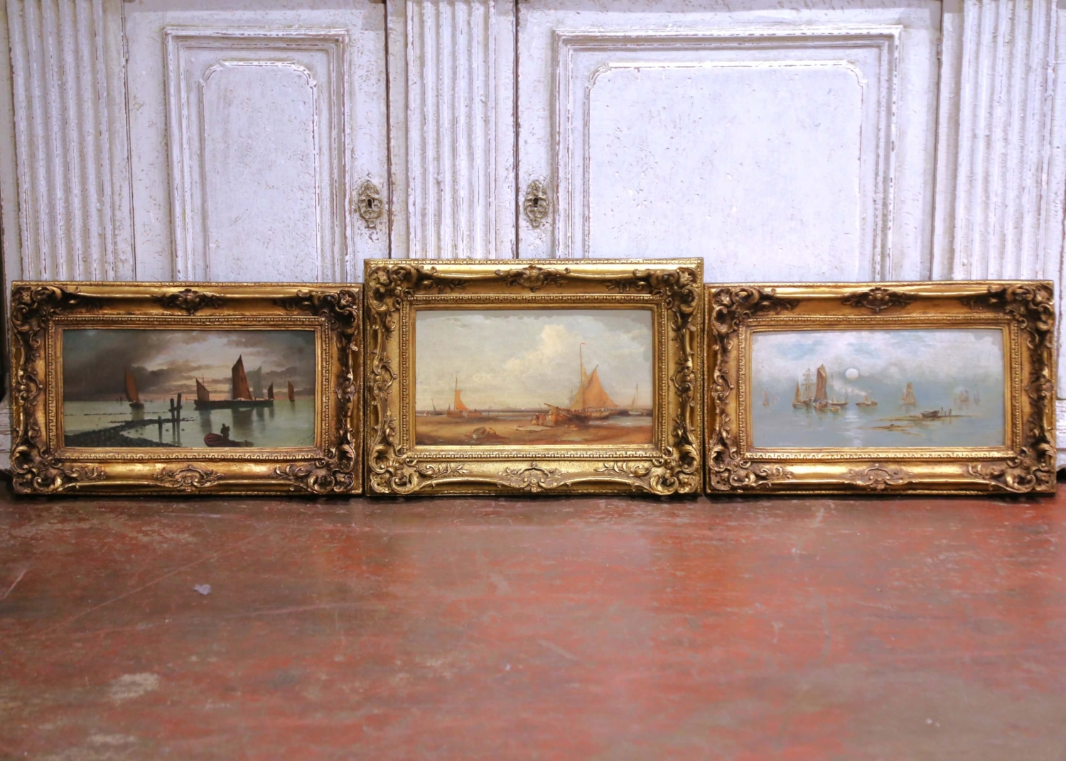 19th-Century English School Maritime Oil Paintings in Gilt Frames, Set of Three