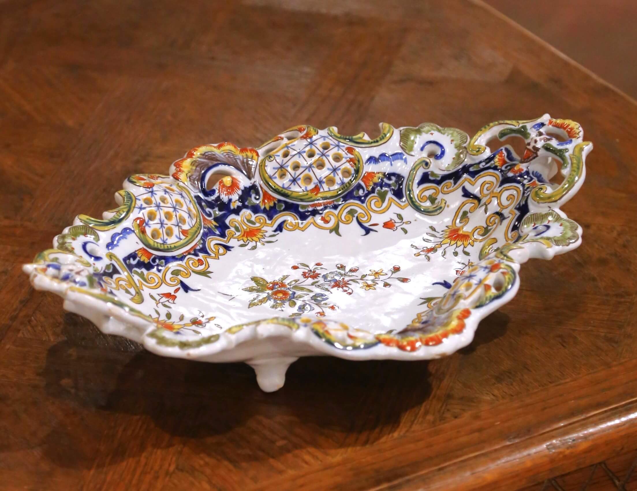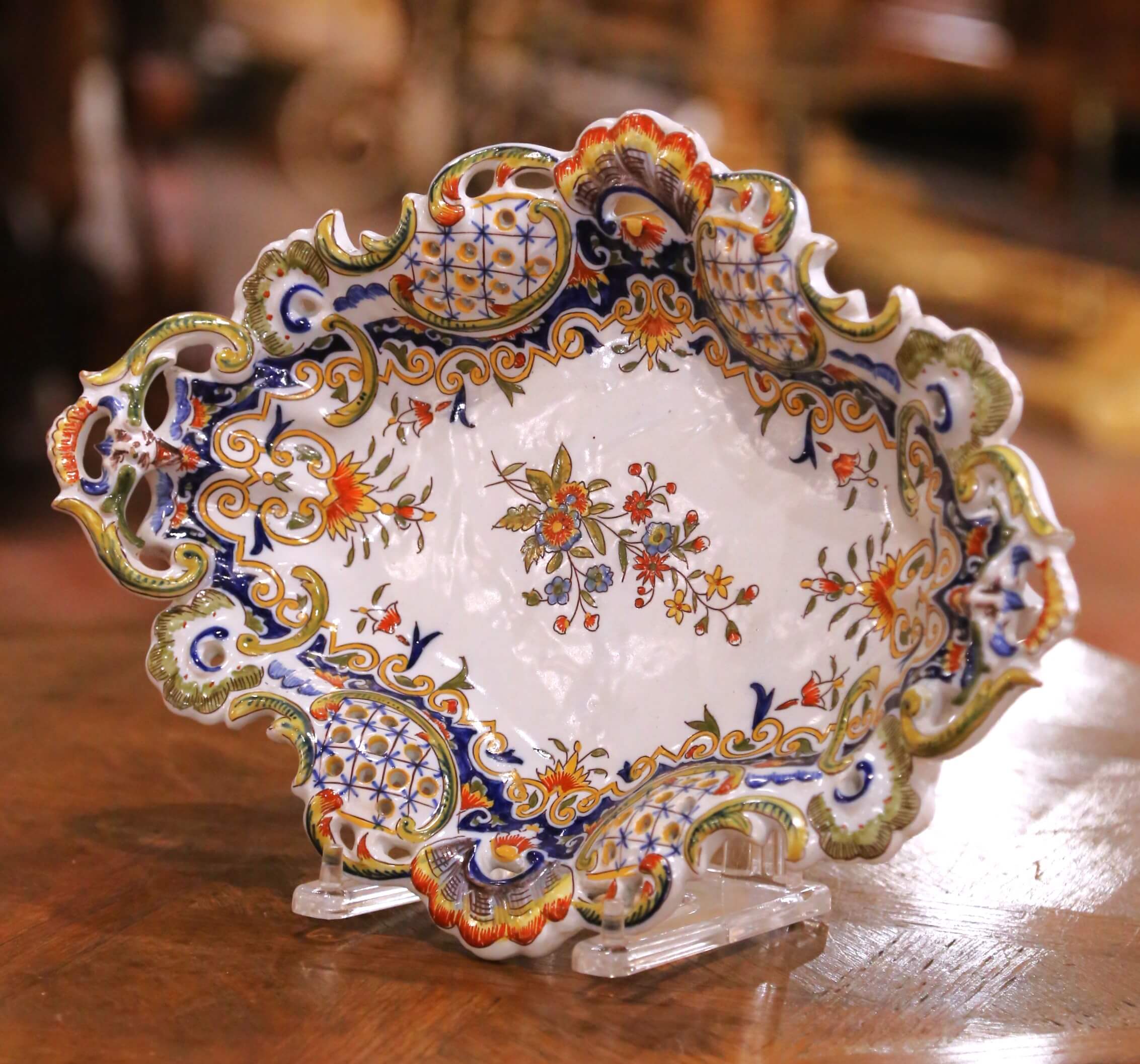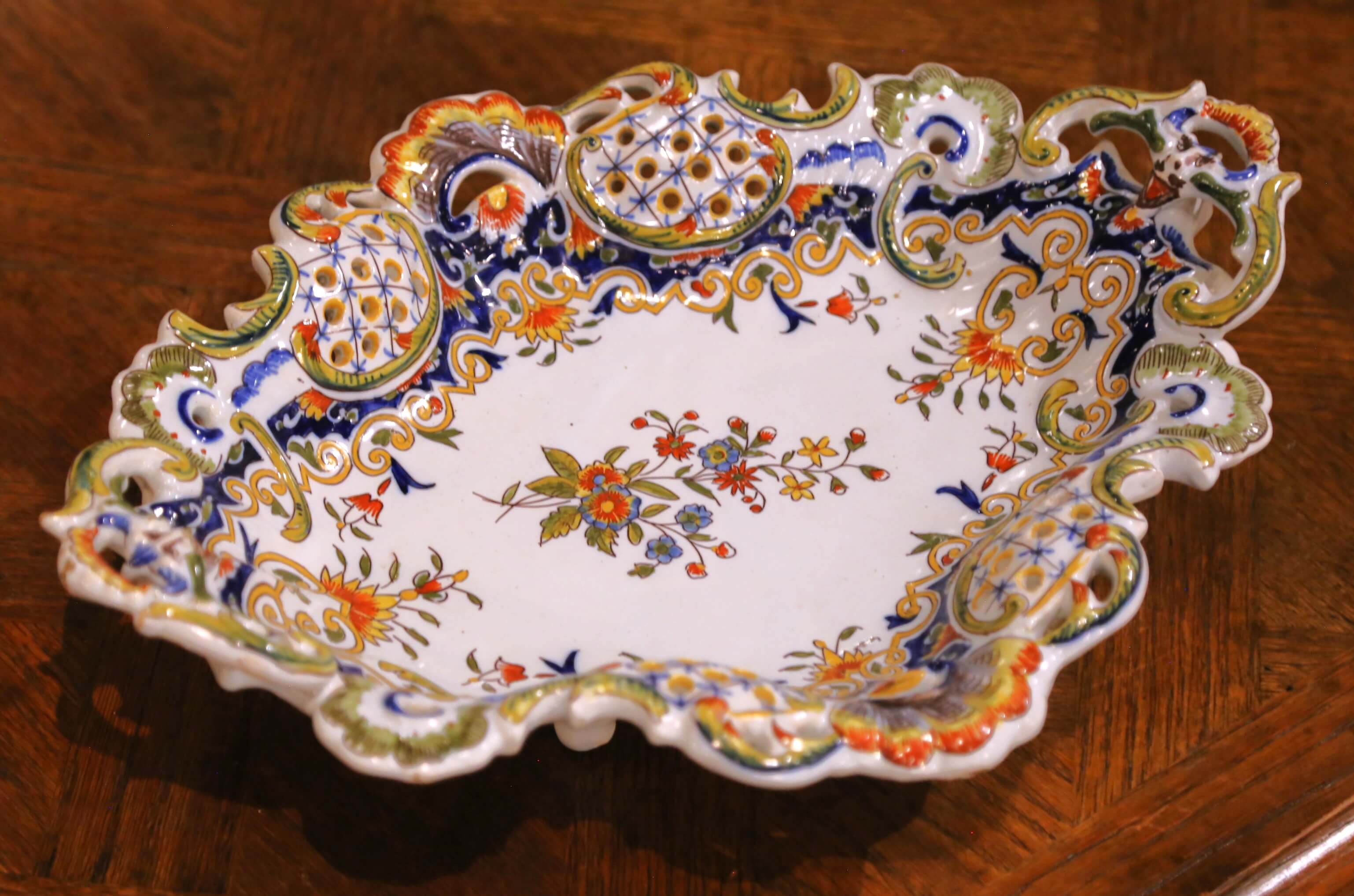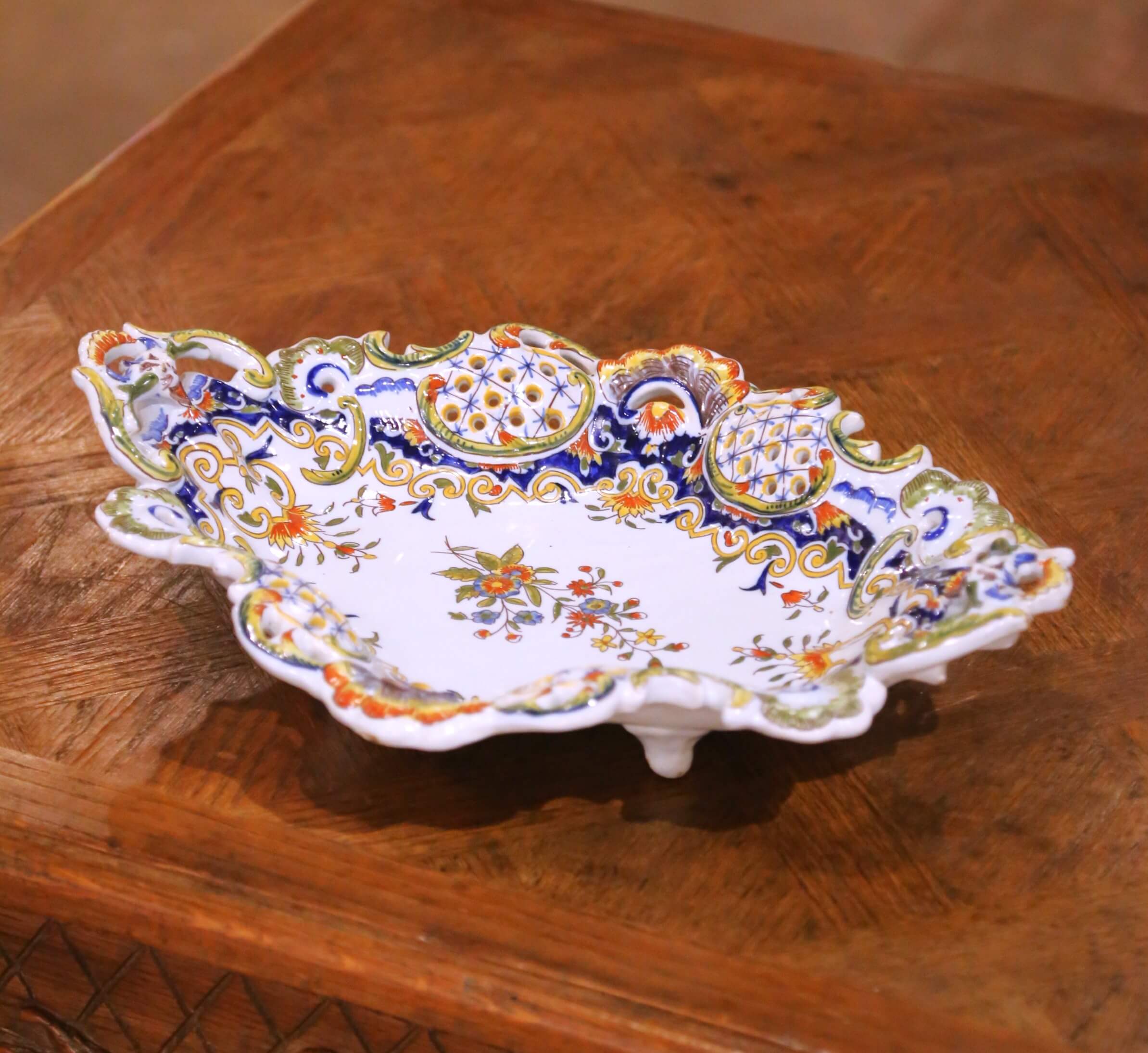 19th Century French Avallon Faience Rouen Style Pierced Centerpiece Tray