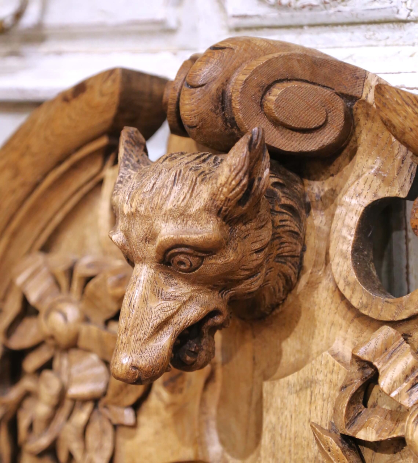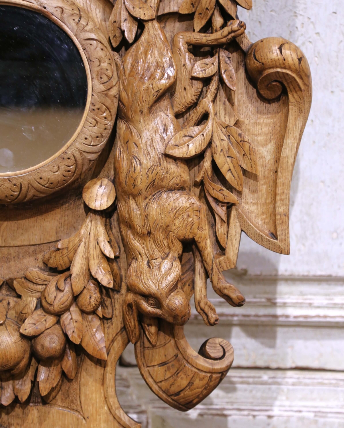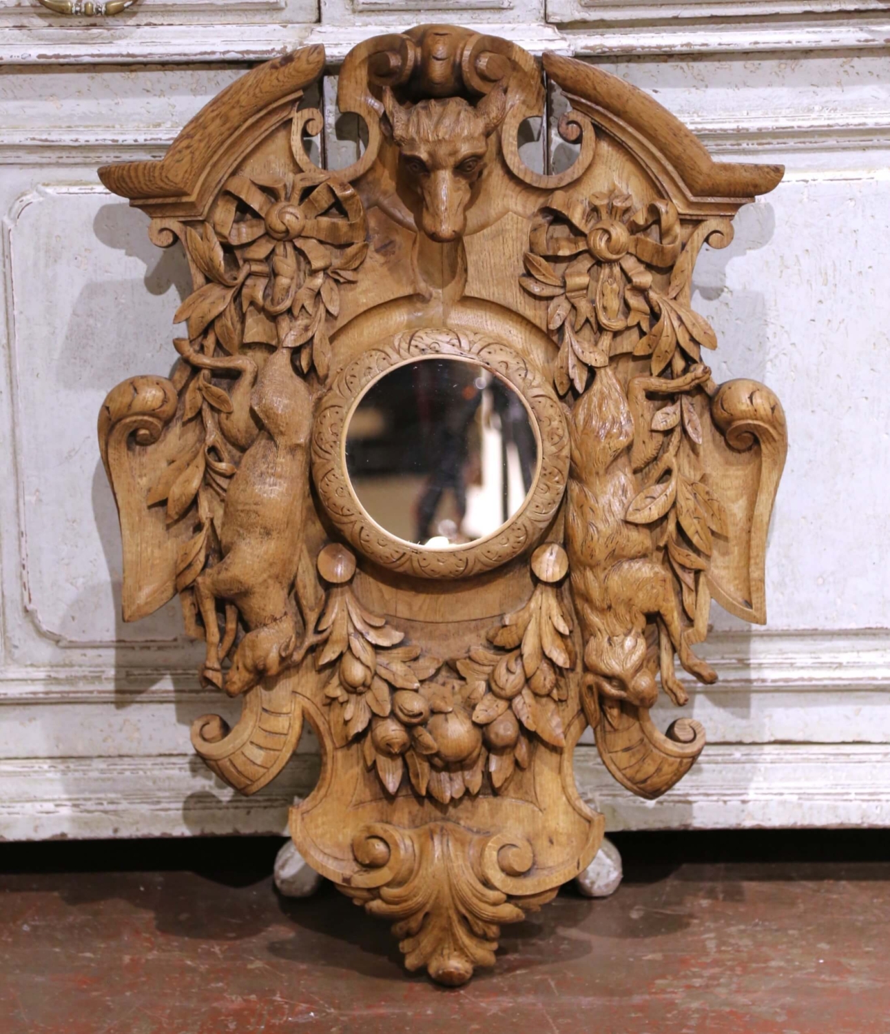 19th Century French Black Forest Carved Oak Hunting Wall Plaque with Mirror