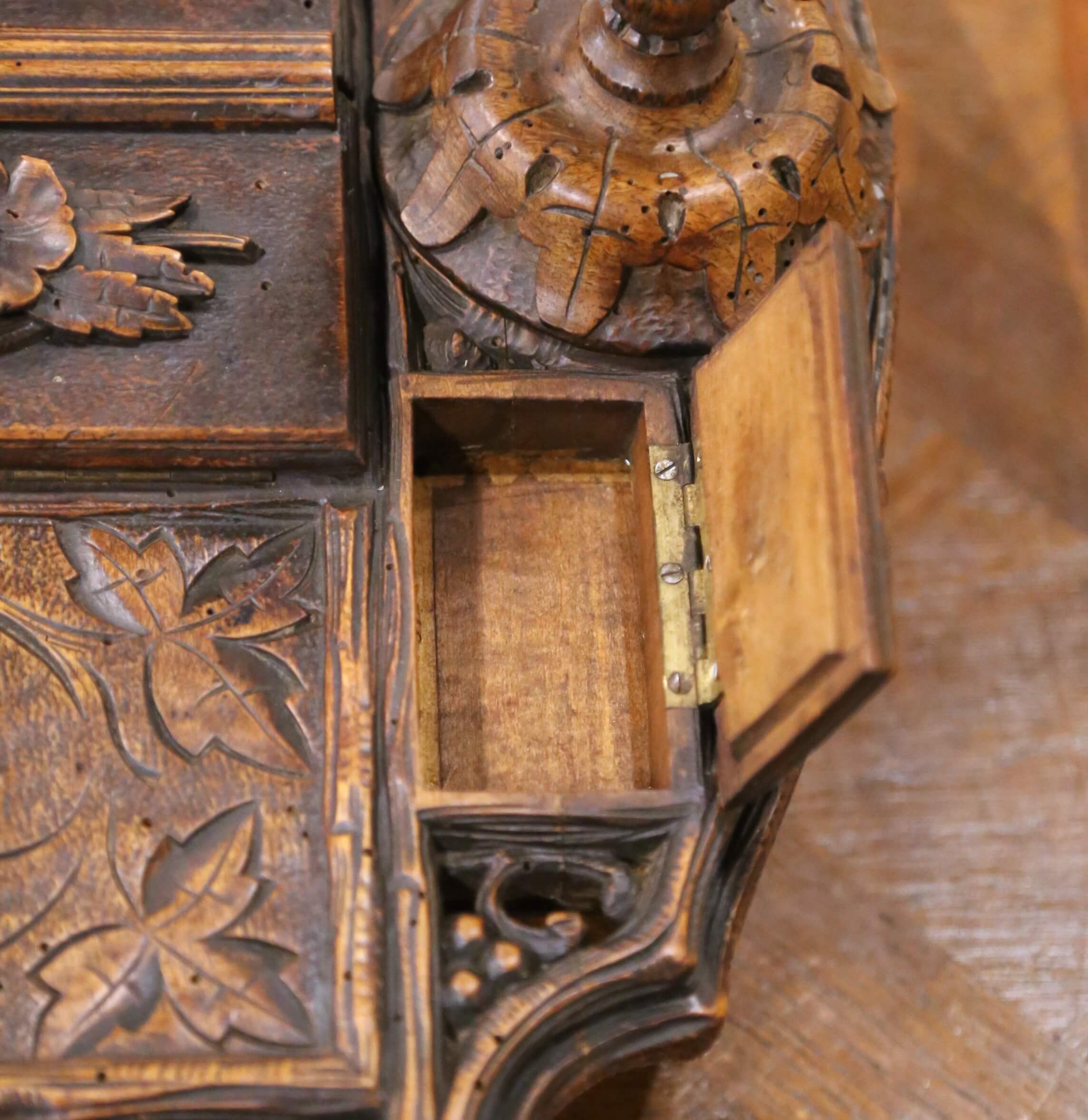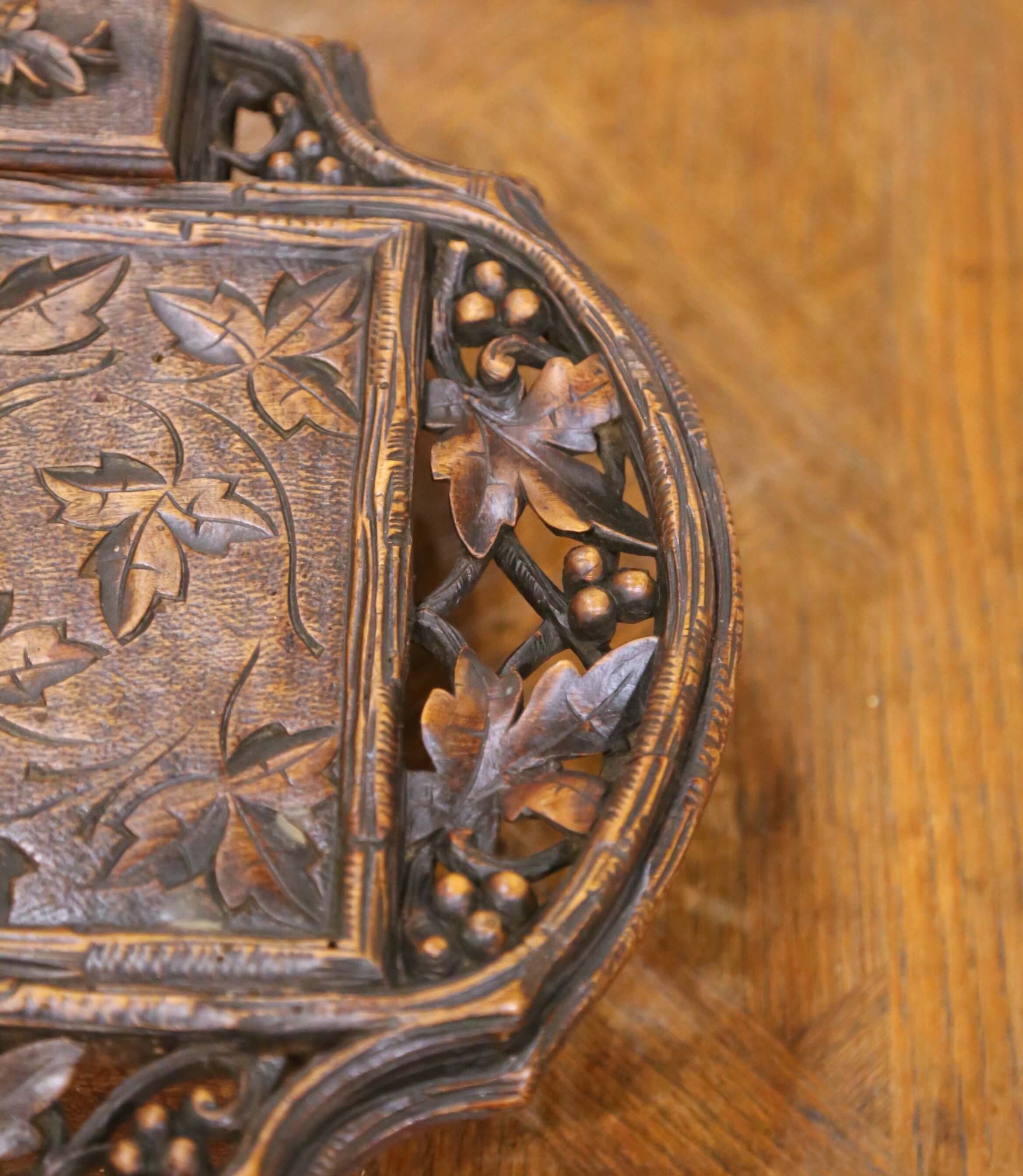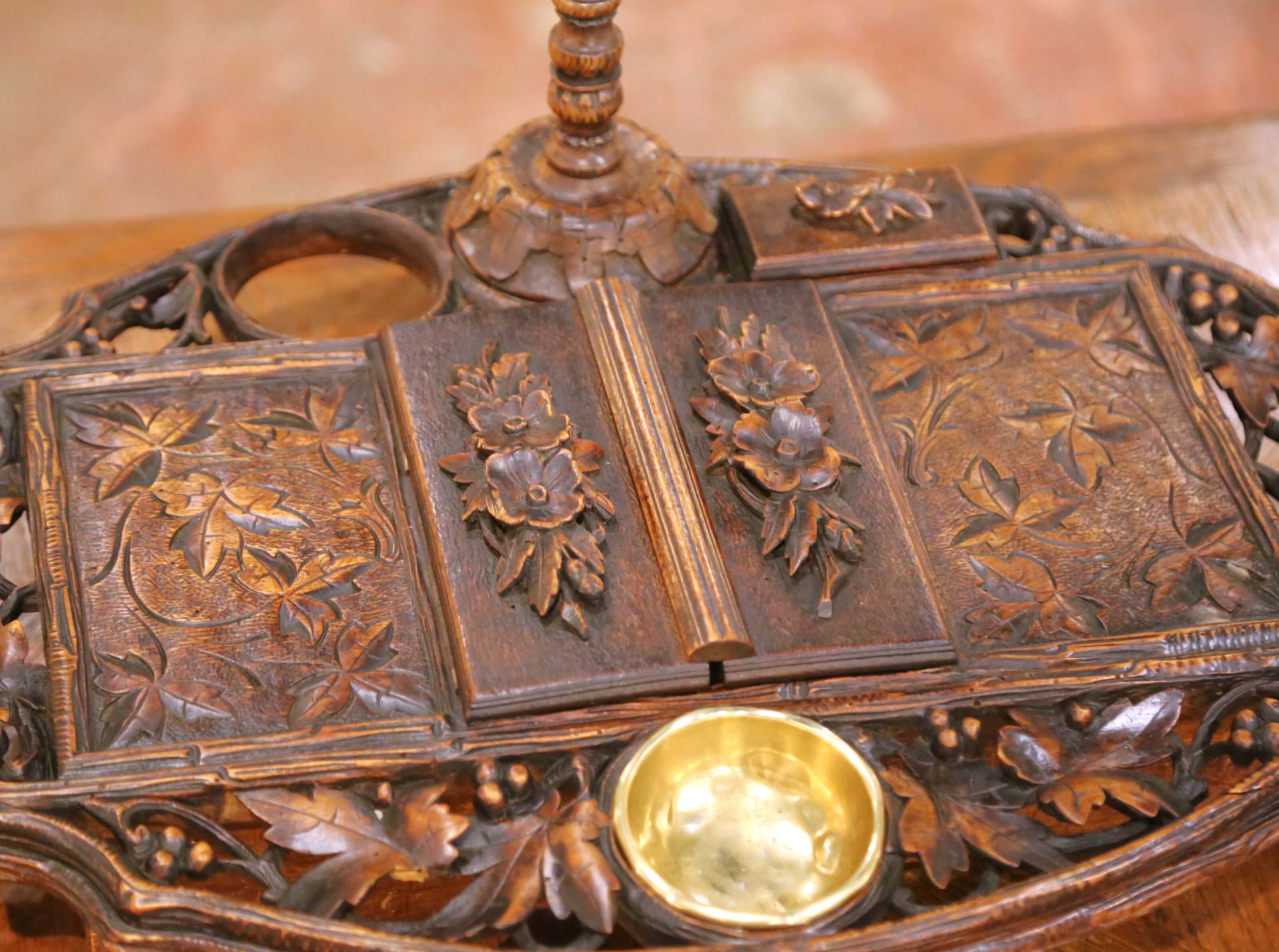 19th Century French Black Forest Carved Walnut Smoker’s Desk Set
