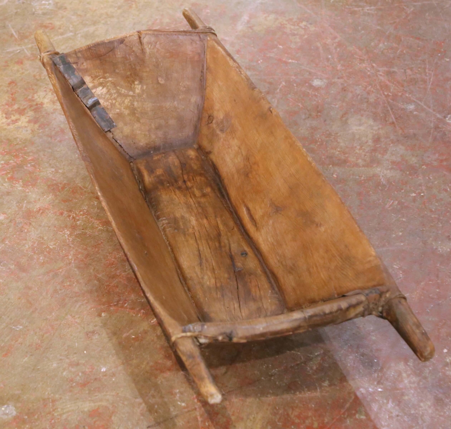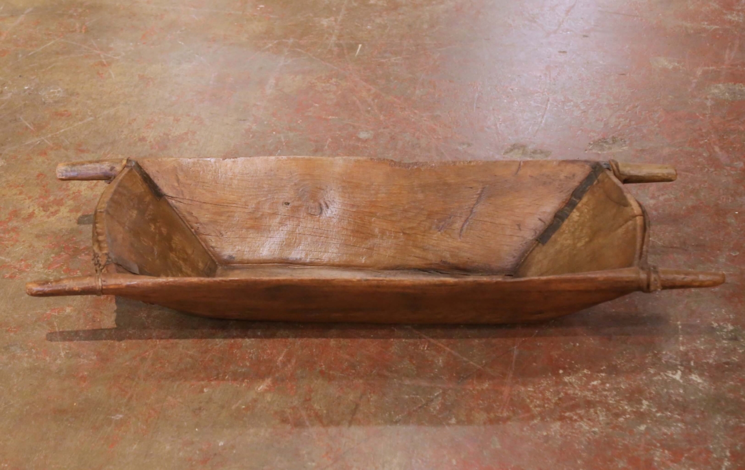 19th Century French Elm Dough Bowl with Hand-Carved Handle