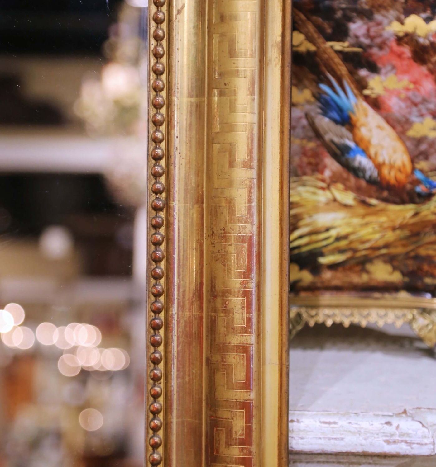 19th Century French Louis Philippe Gilt Wall Mirror with Greek Key Decor