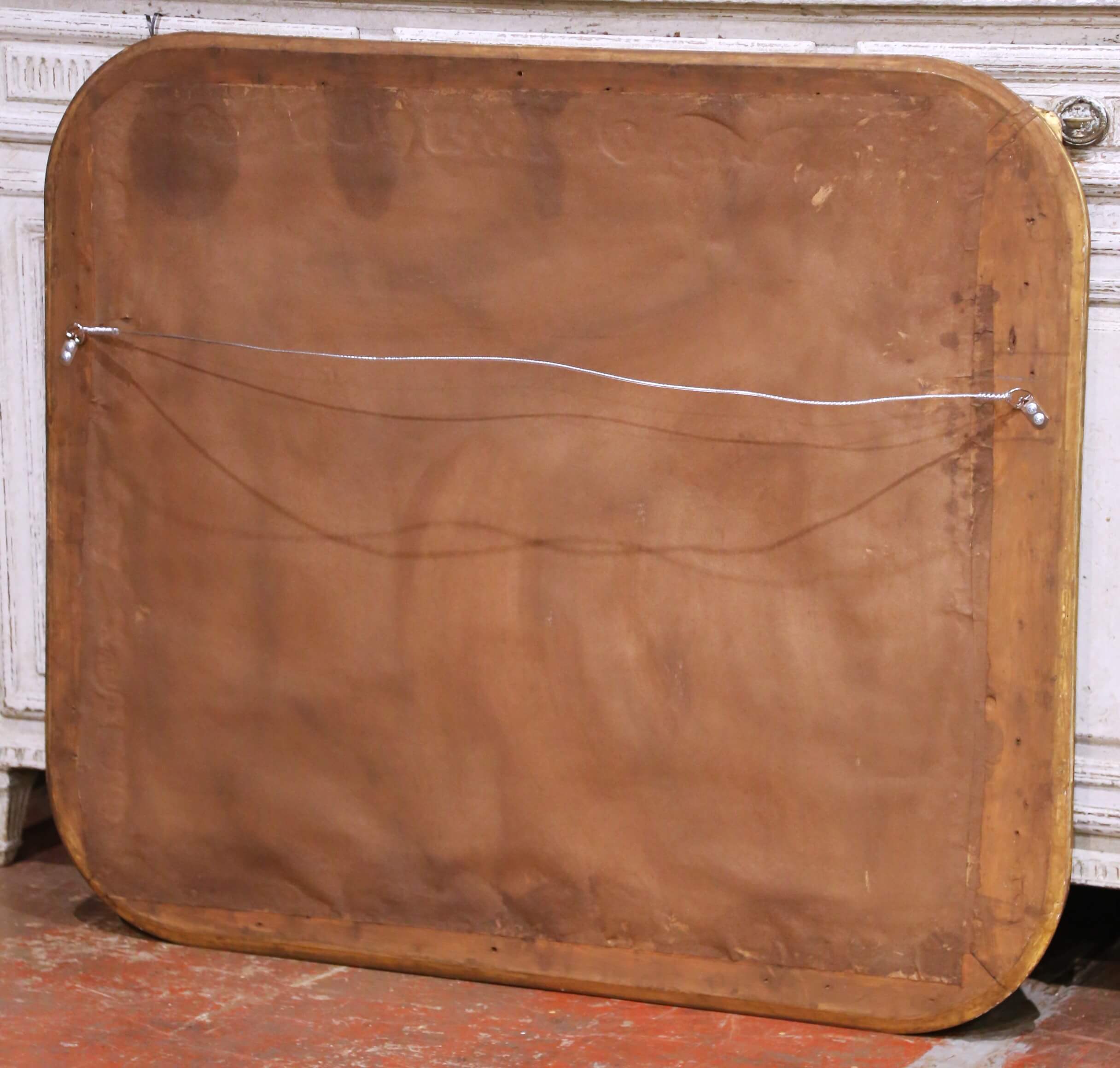 The antique mirror is in excellent condition commensurate with age and use, with minor wear to the gilt surface consistent with time, enhancing its authenticity and character.
