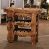 This antique table was crafted in the Poitou region of France, circa 1880. The rustic, oak piece decorated with the word “Provence” across the front, has a very thick top and features two rows underneath specifically for storage up to eight wine bottles total. This sturdy, rustic Provincial table is in excellent condition commensurate with age and use, and adorns a rich walnut patina; it would make a great addition to a kitchen, wine cellar and all entertainment purposes. Antique wrought iron plank holder tool included. Provence, a region in southeastern France bordering Italy and the Mediterranean Sea, is known for its diverse landscapes, from the Southern Alps and Camargue plains to rolling vineyards, olive groves, pine forests and lavender fields. To the south is the Côte d’Azur (or French Riviera), where the elegant city of Nice and glamorous resort towns such as Saint-Tropez and Cannes line the coast. Measures: 36″ W x 15″ D x 32″ H.