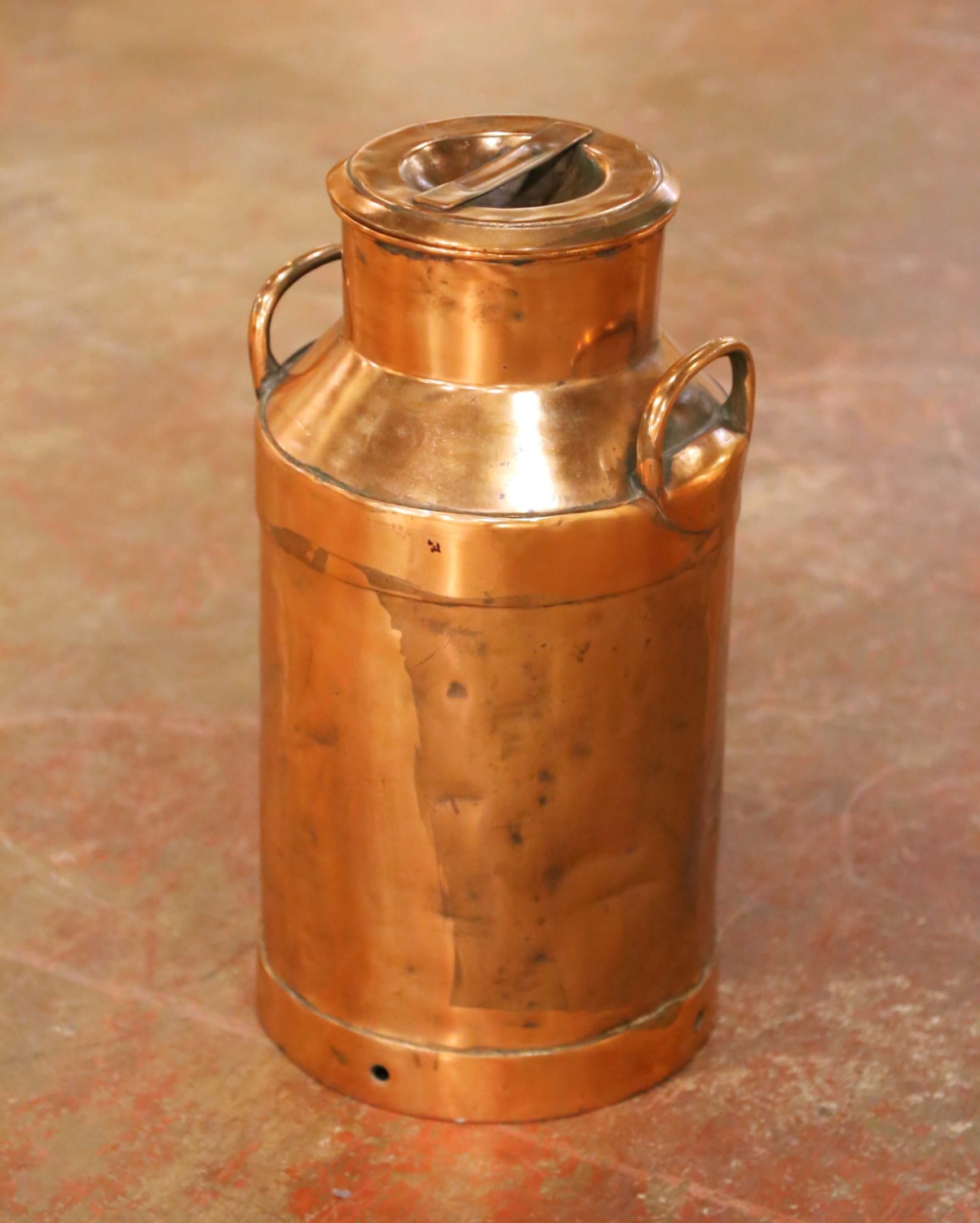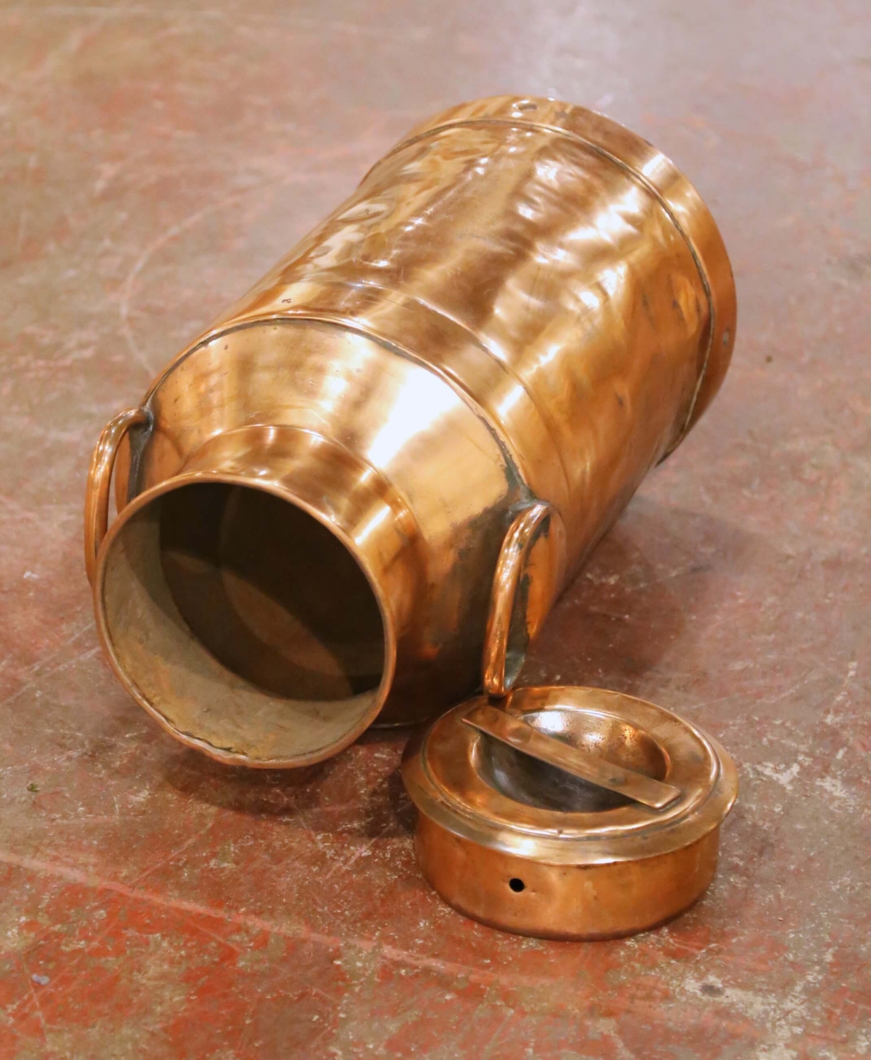 19th Century French Polished Copper Milk Can with Lid and Handles