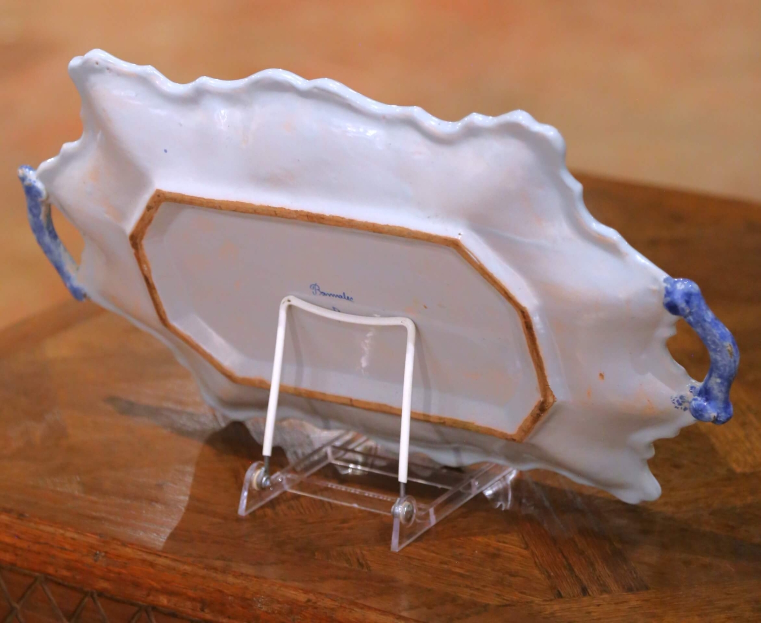 19th Century French Porquier-Beau Quimper Faience Tray Platter with Handles