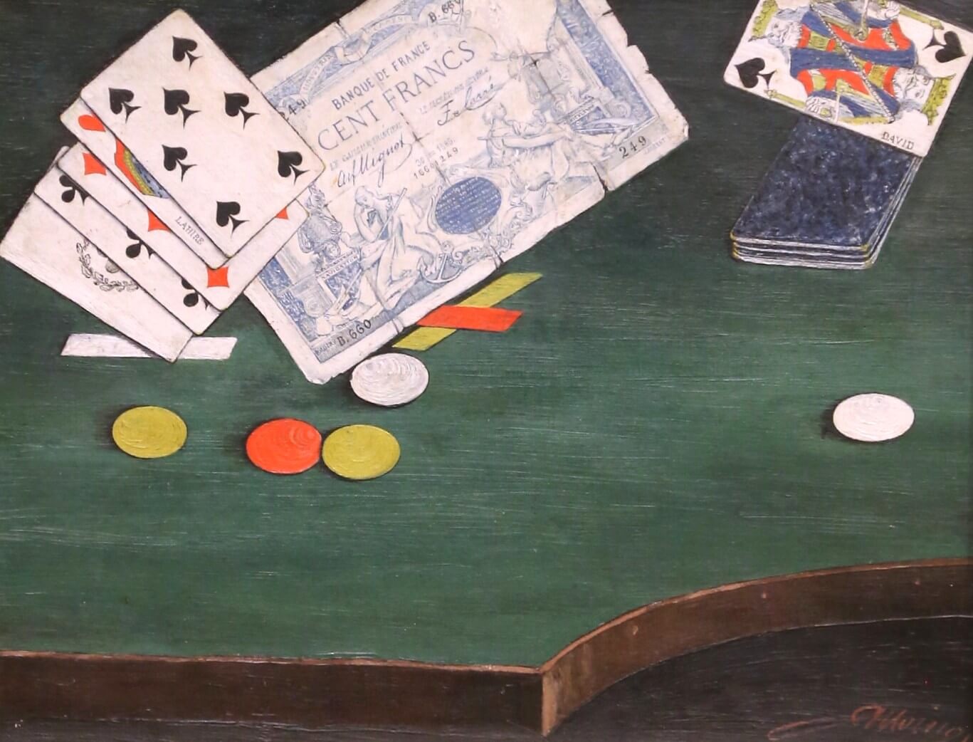 19th Century French Signed Still Life Painting of Playing Cards and Casino Table