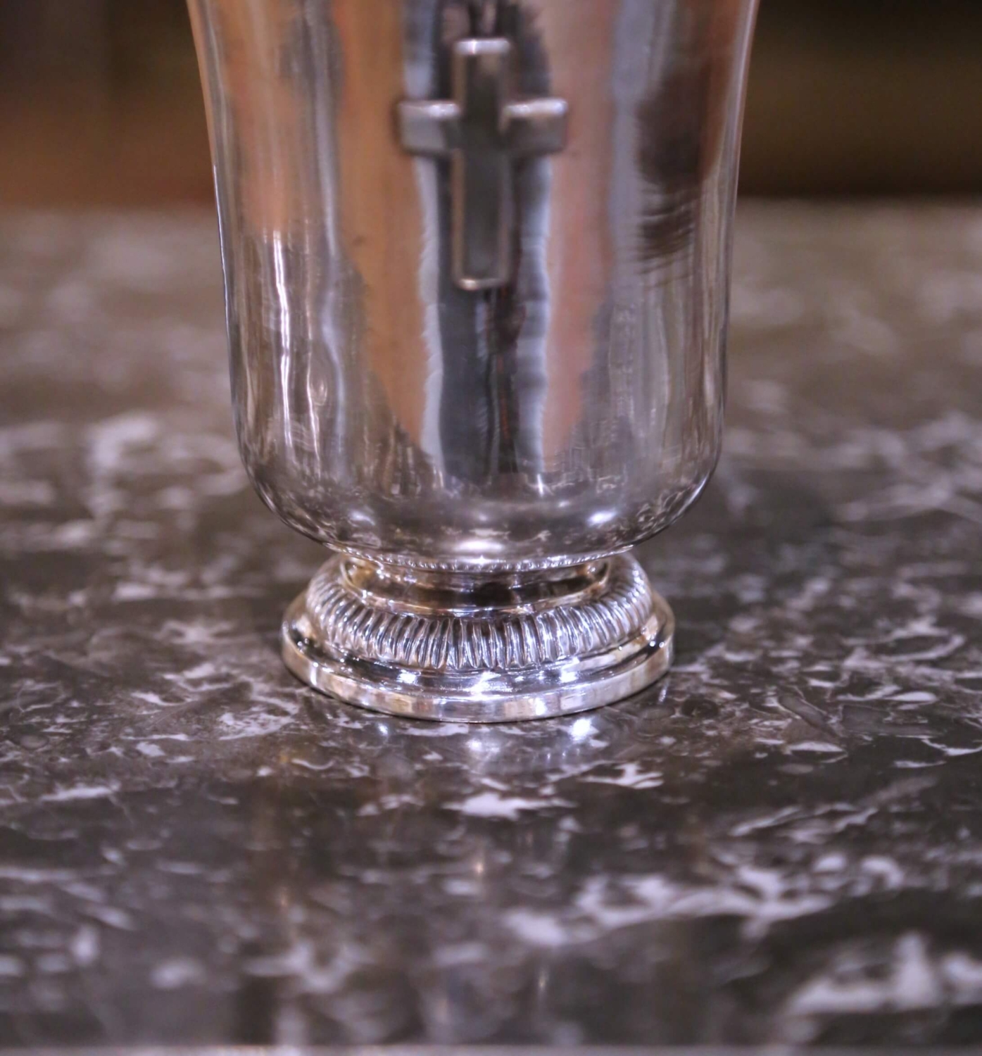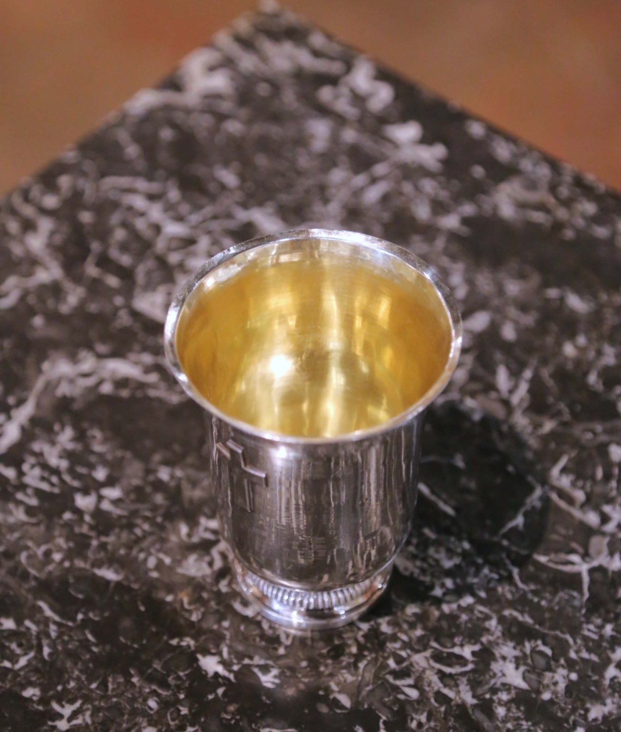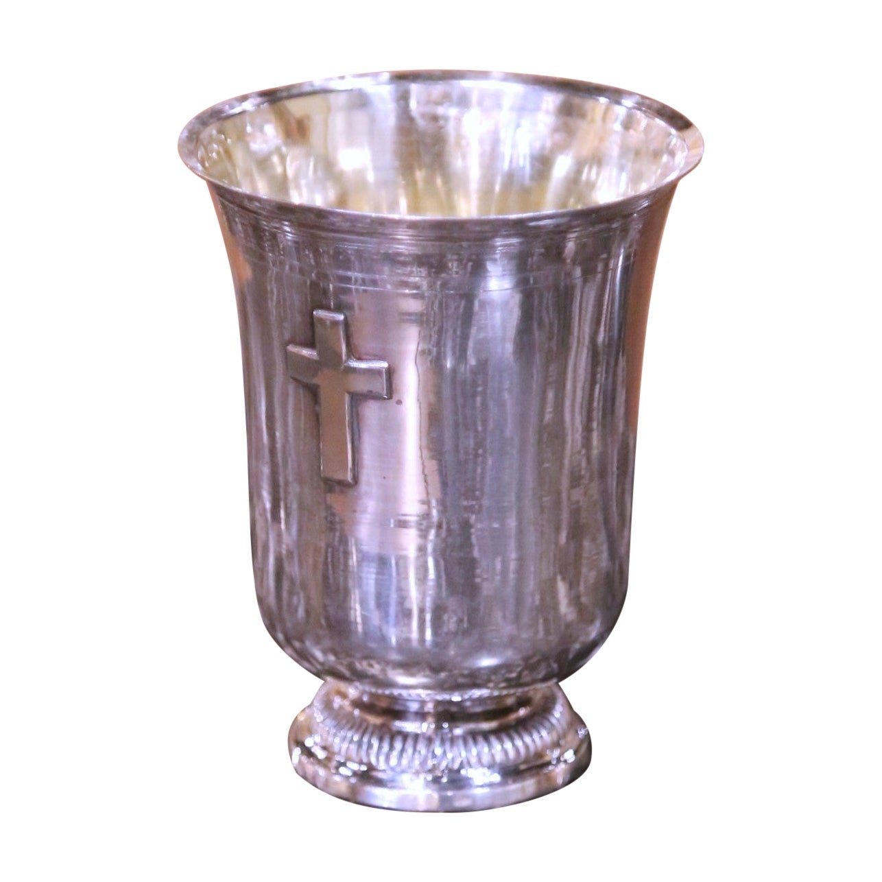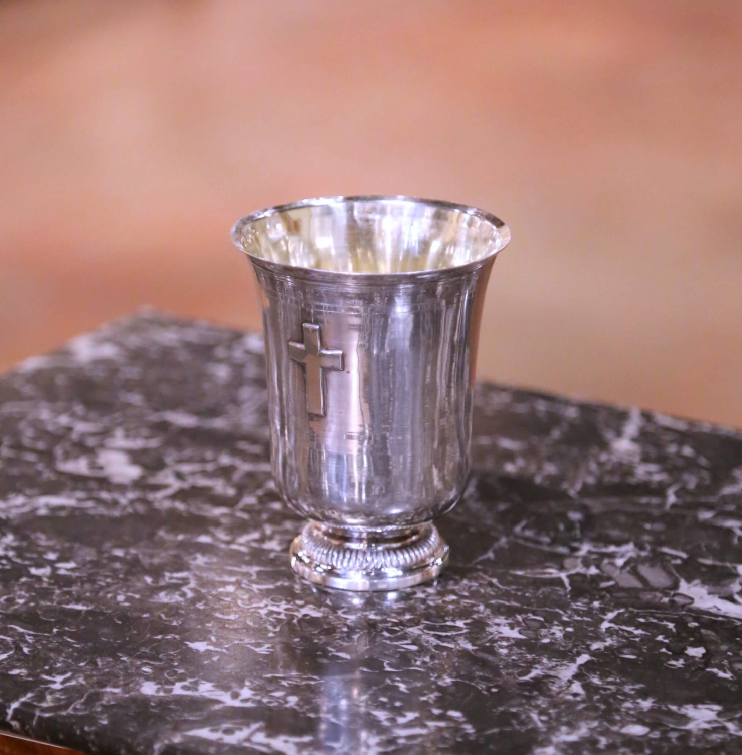 19th Century French Silver Baptism Timbale with Raised Cross, Minerva Marking