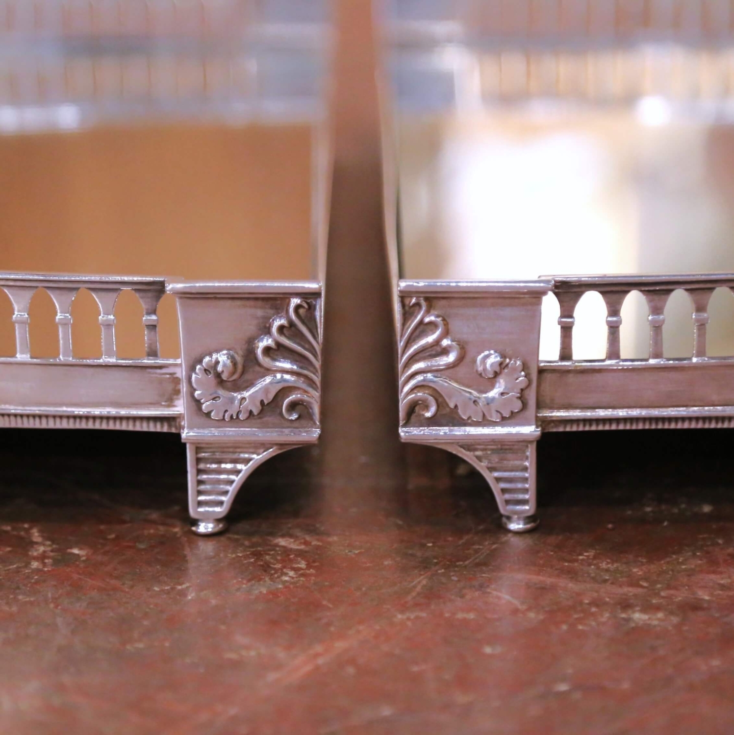 19th Century French Silvered Bronze & Mirrored Two-Piece “Surtout de Table”