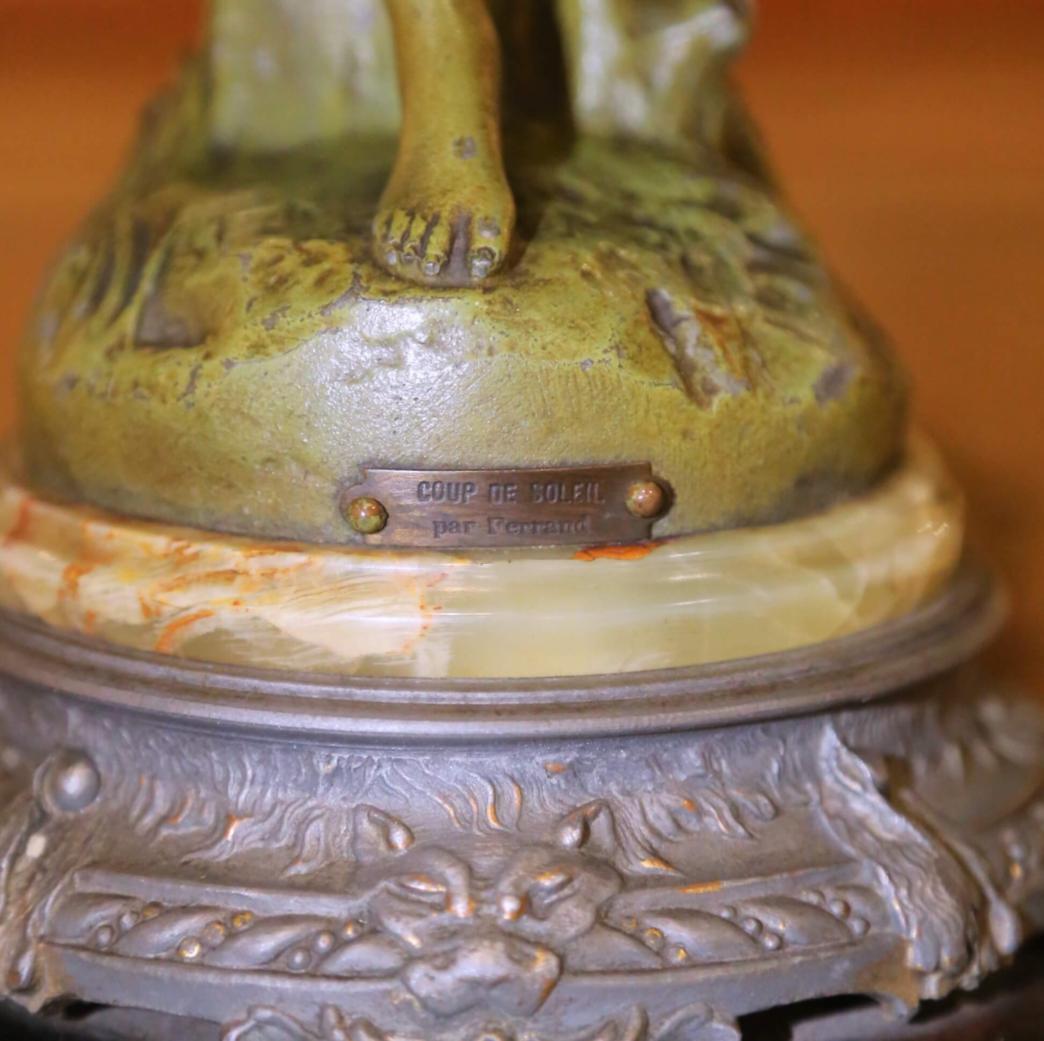 19th Century French Spelter Figural Lamp “Coup de Soleil” Signed Ferrand