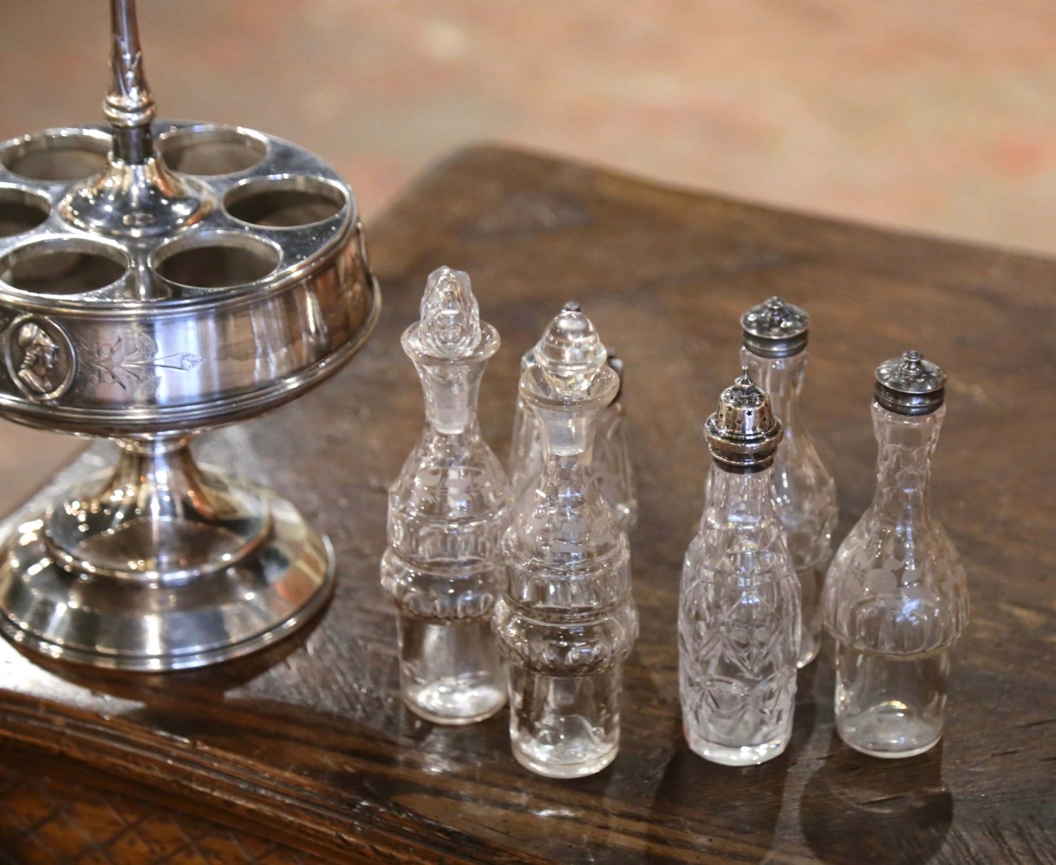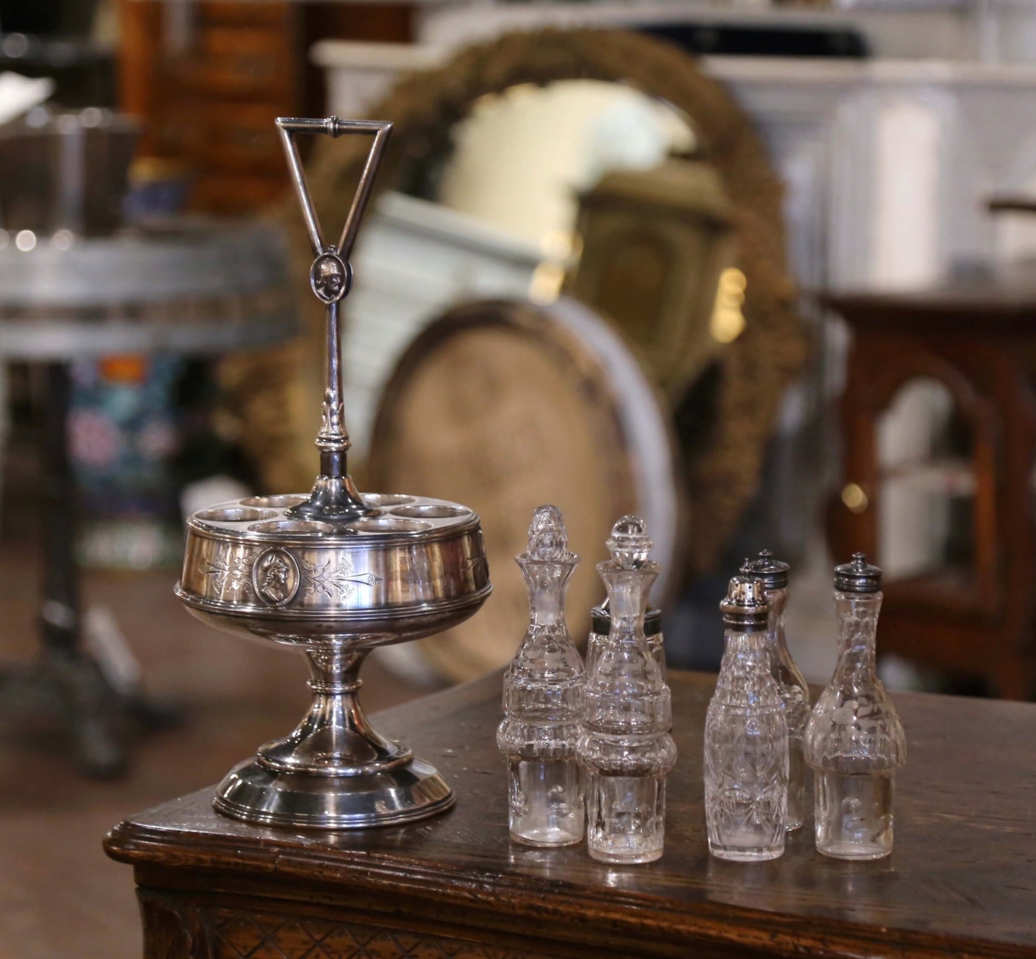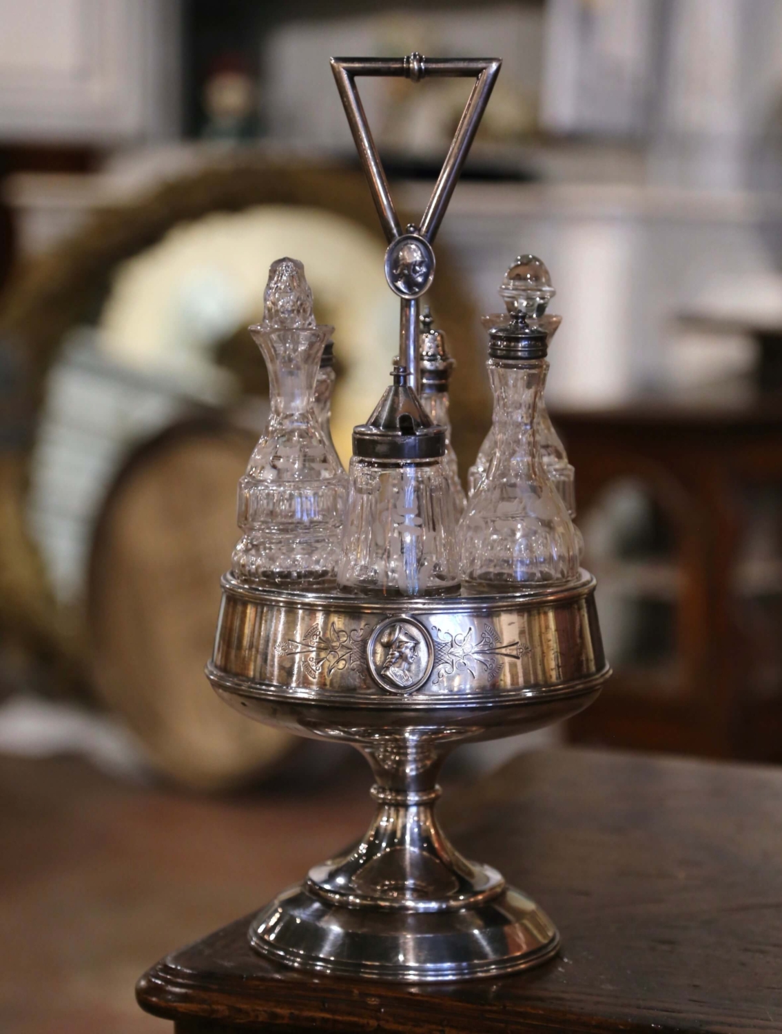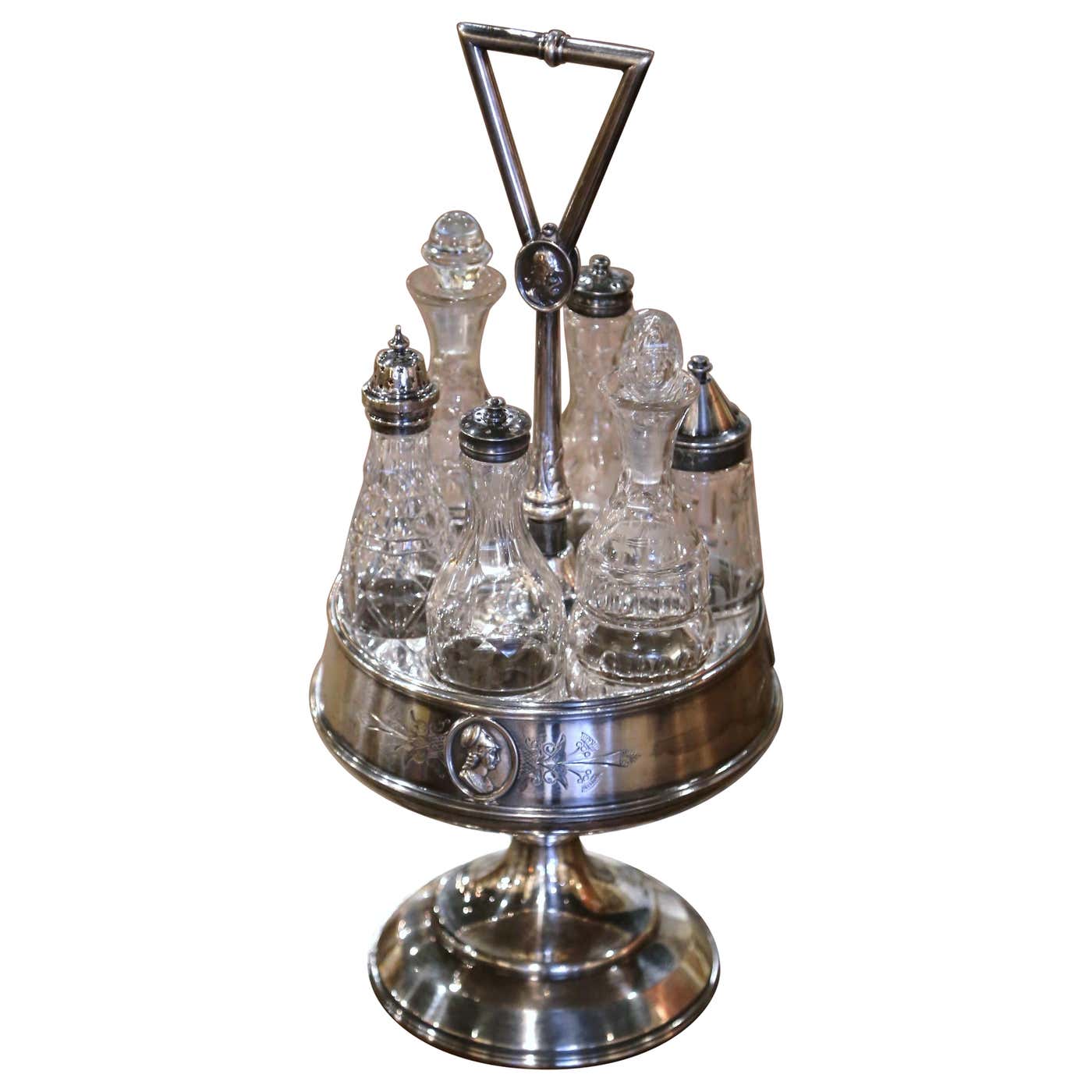 19th Century Reed & Barton Silver-Plated Cruet Set with Six Crystal Bottles