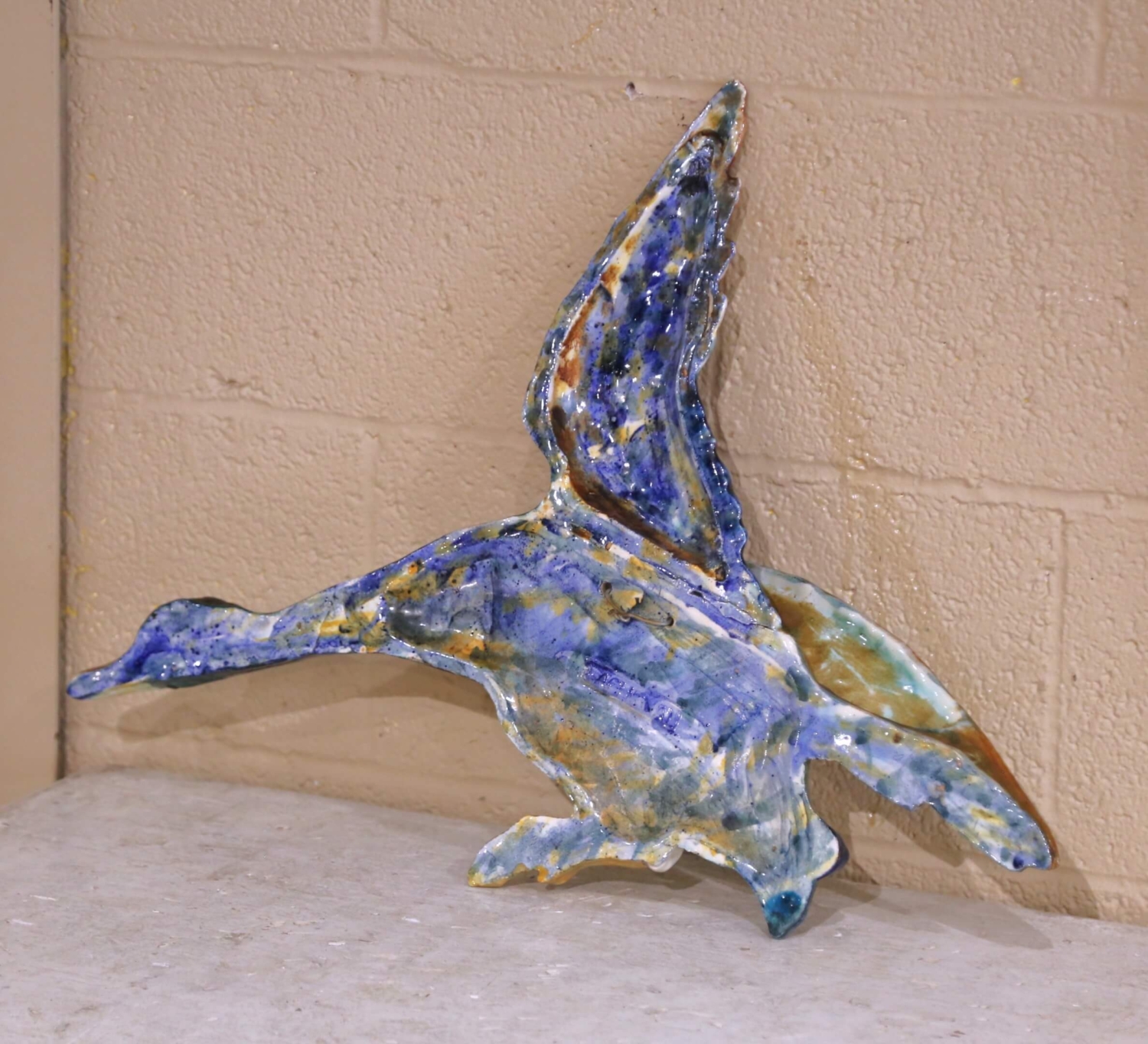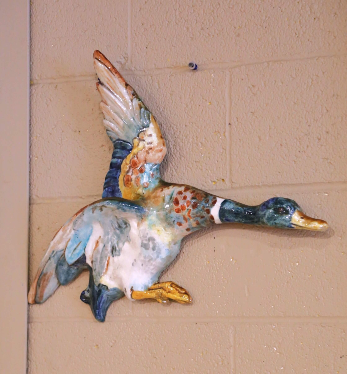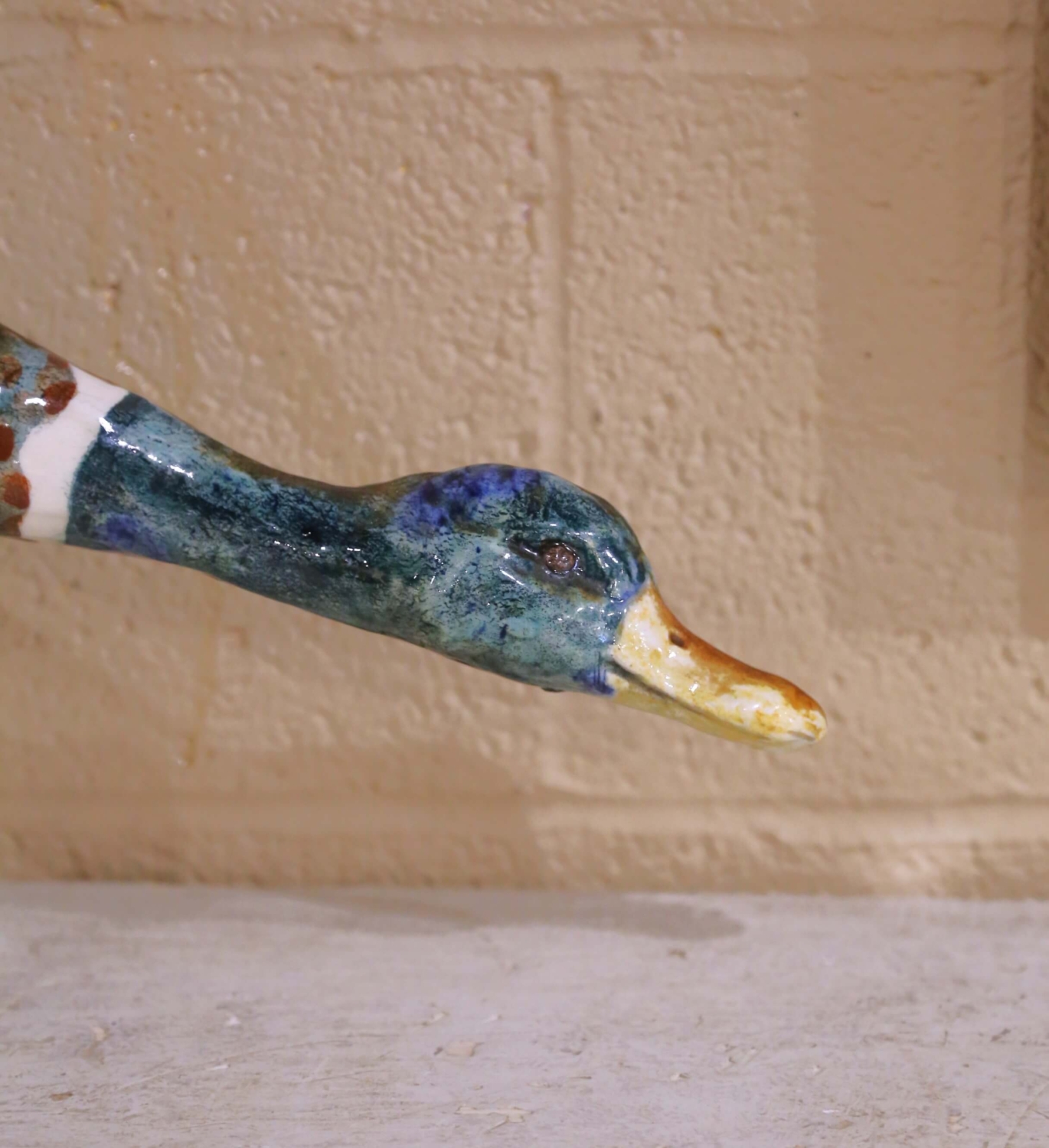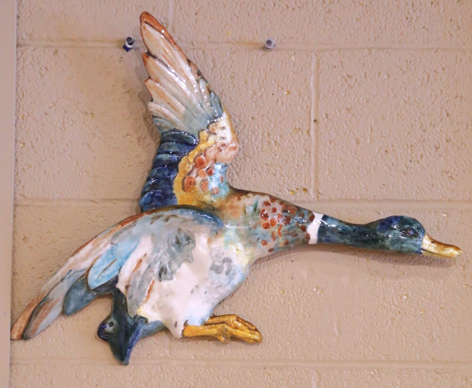 Early 20th C. French Barbotine Faience Duck Wall Sculpture by Edmond Lachenal