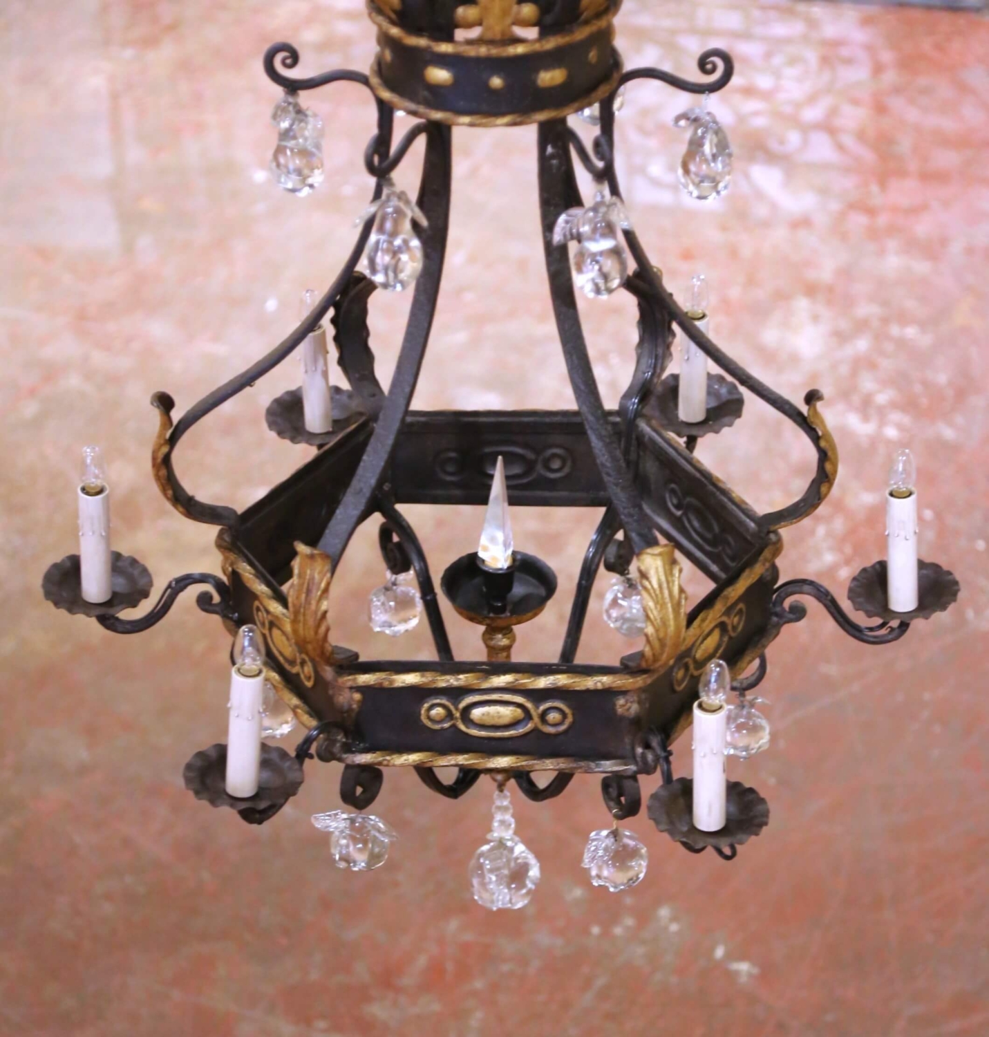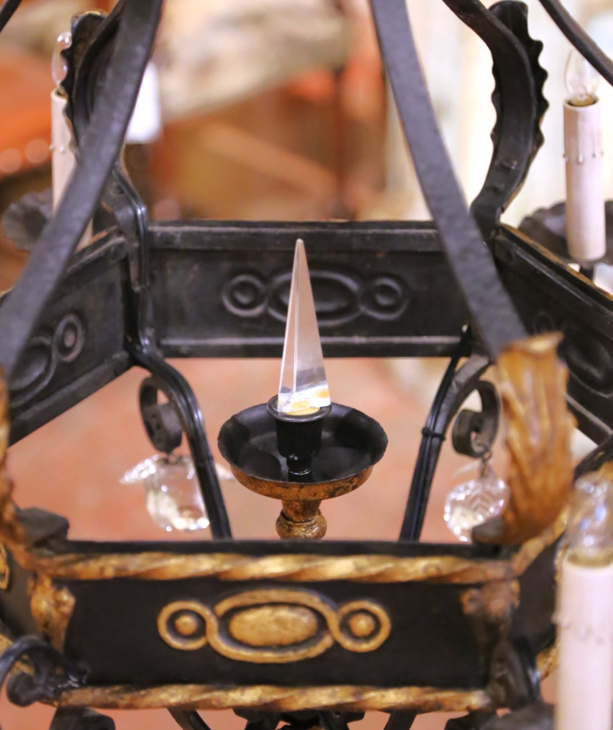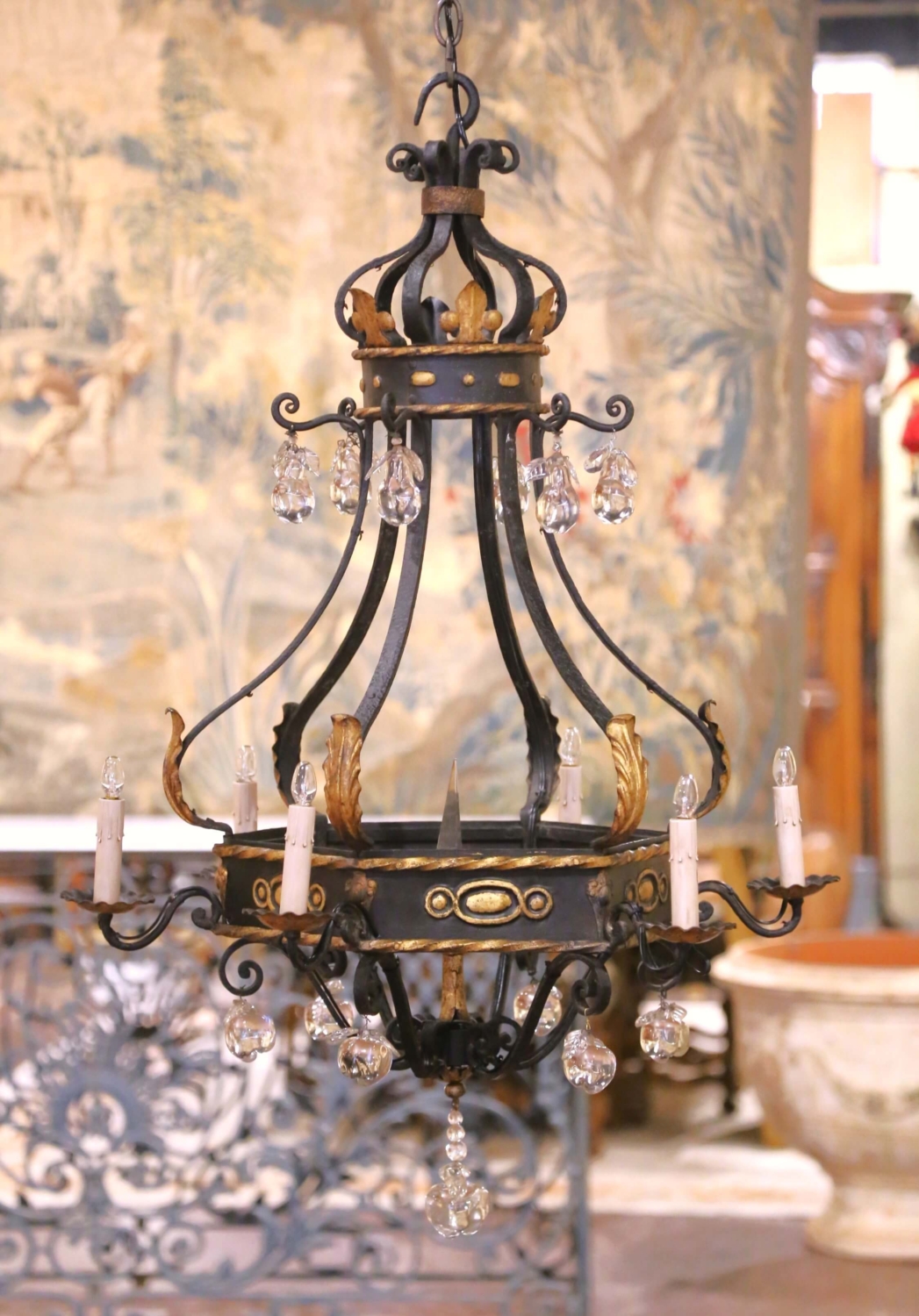 Early 20th C. French Louis XV Iron Chandelier with Gilt and Crystal Pendants