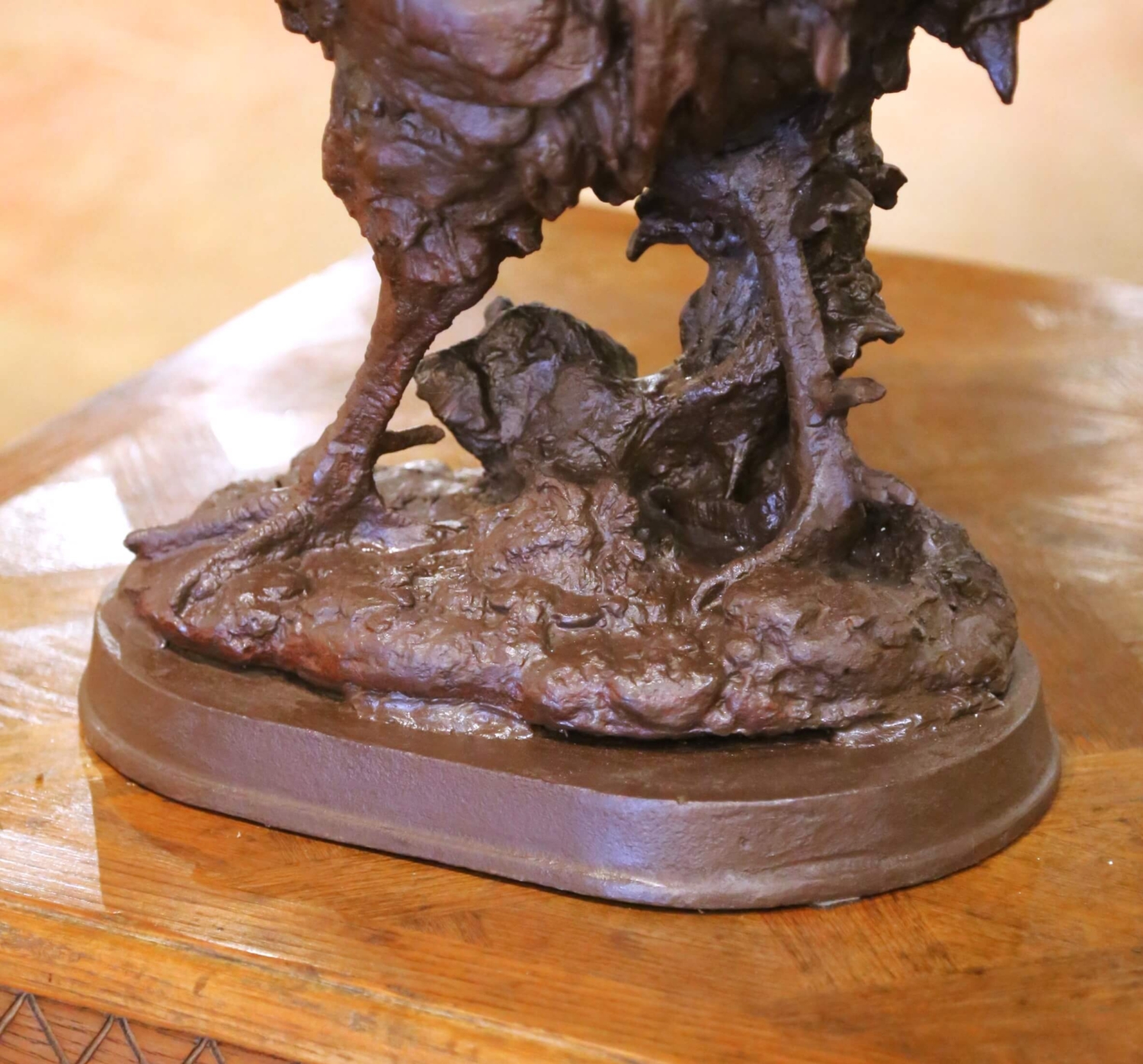 Early 20th Century French Cast-Iron Rooster Sculpture on Oval Base
