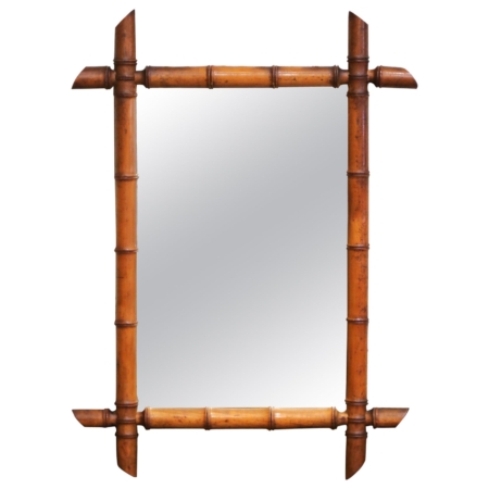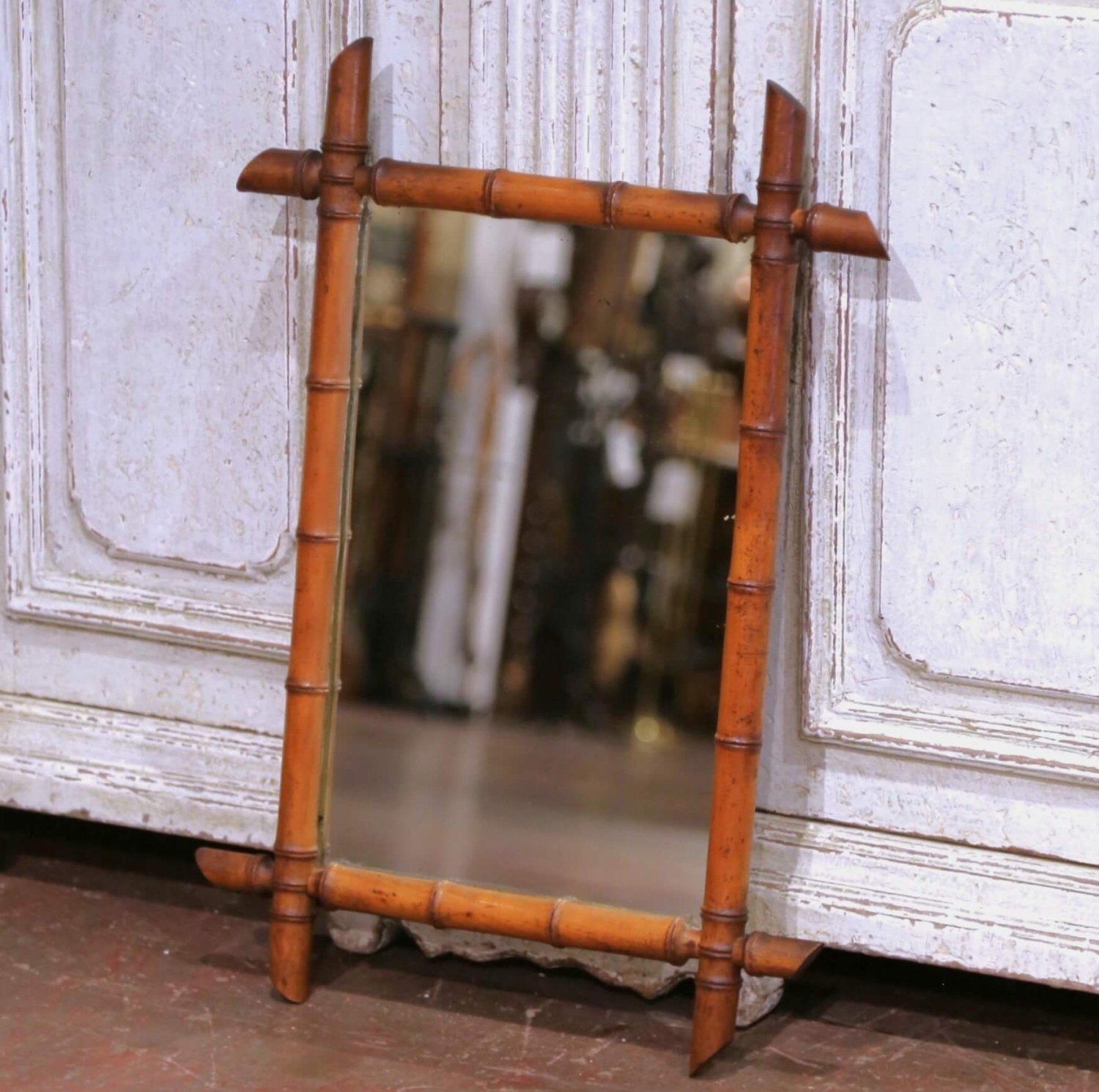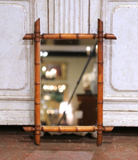 Early 20th Century French Hand Carved Walnut Faux Bamboo Wall Mirror