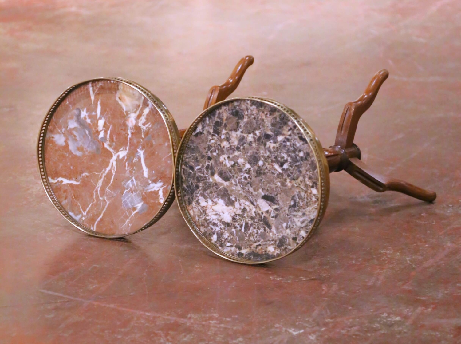 Early 20th Century French Napoleon III Walnut Martini Tables with Marble Tops