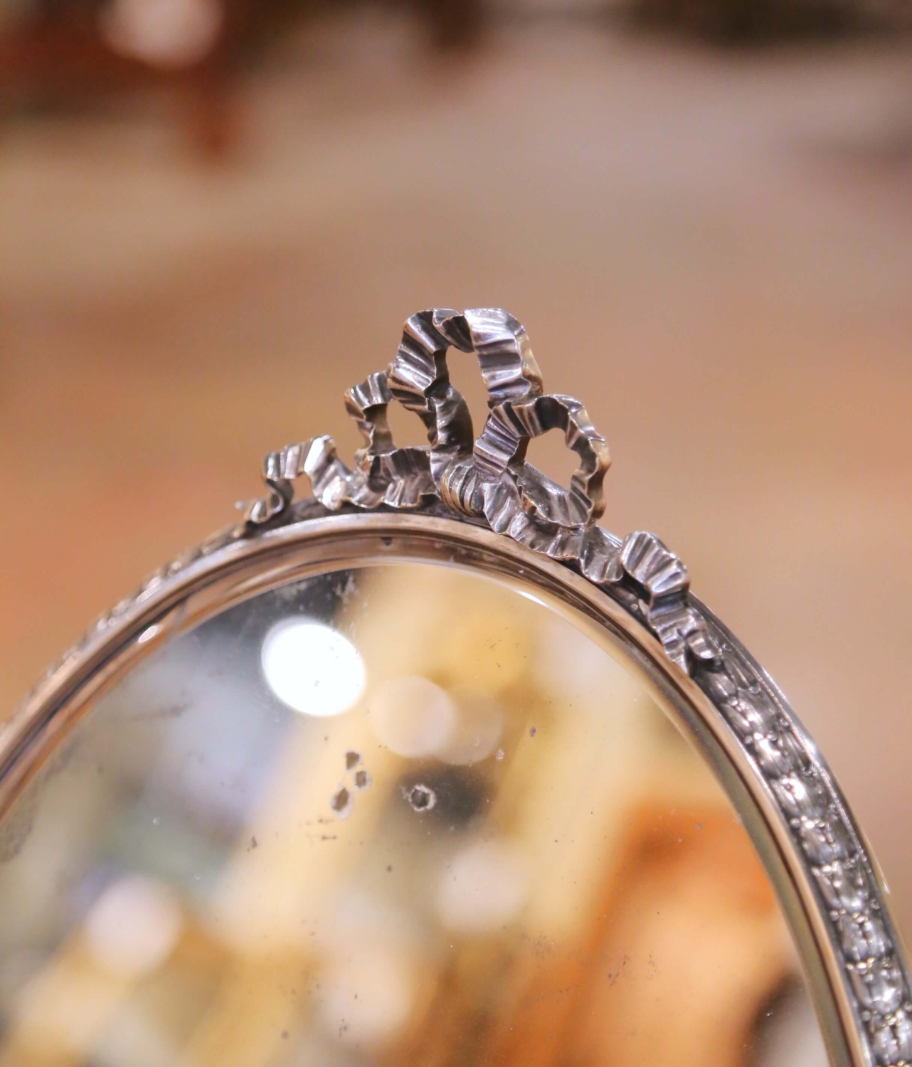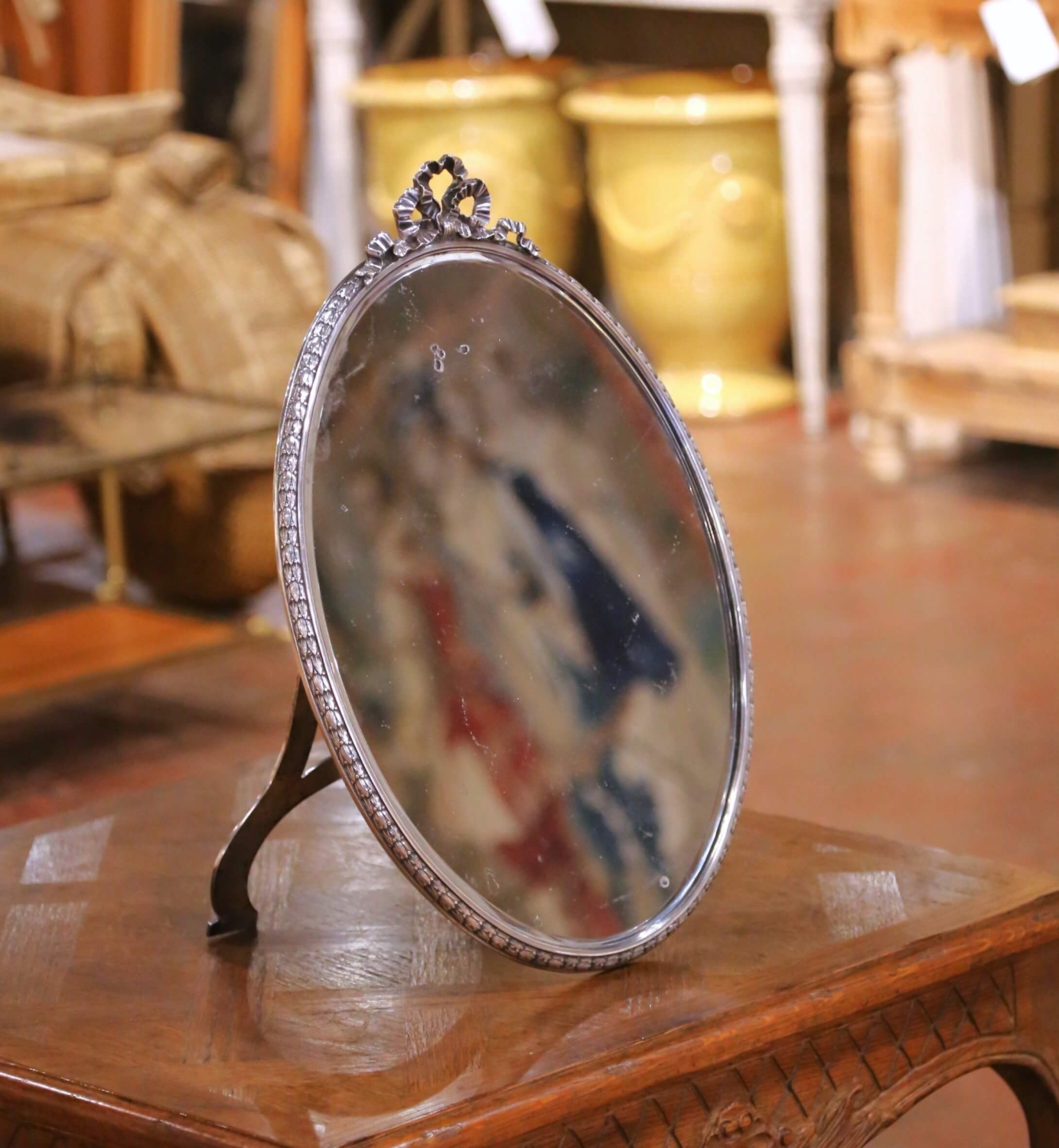 Early 20th Century French Silverplated Over Nickel Vanity Mirror with Bow Crest