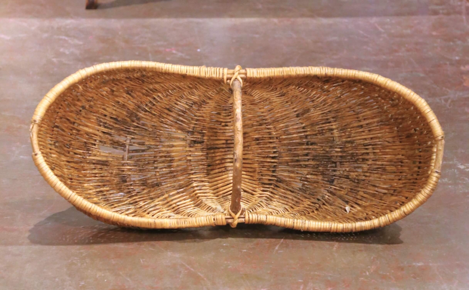 Early 20th Century French Wicker Harvest Basket with Center Handle from Normandy