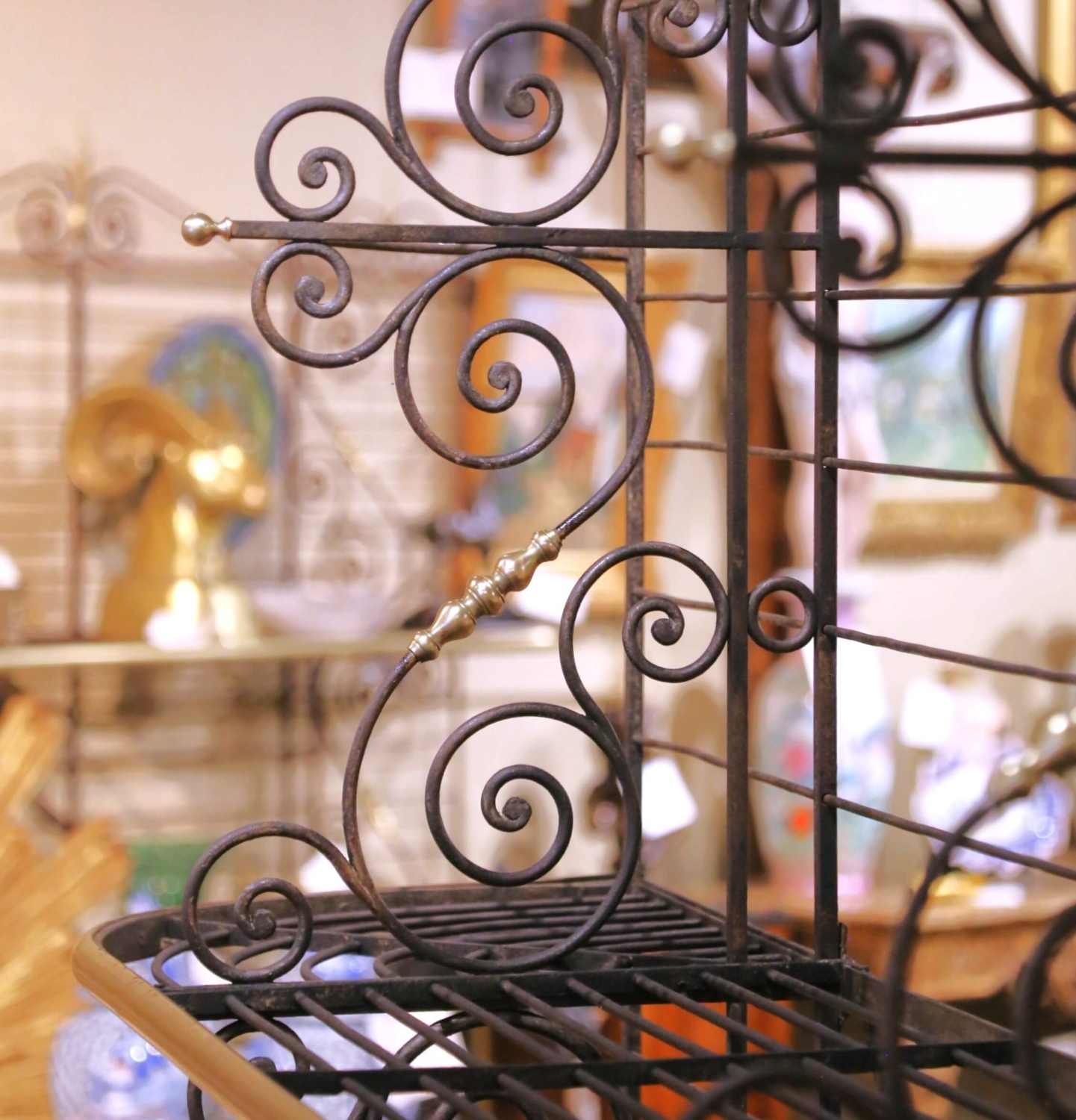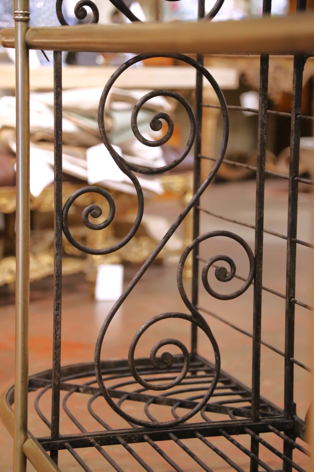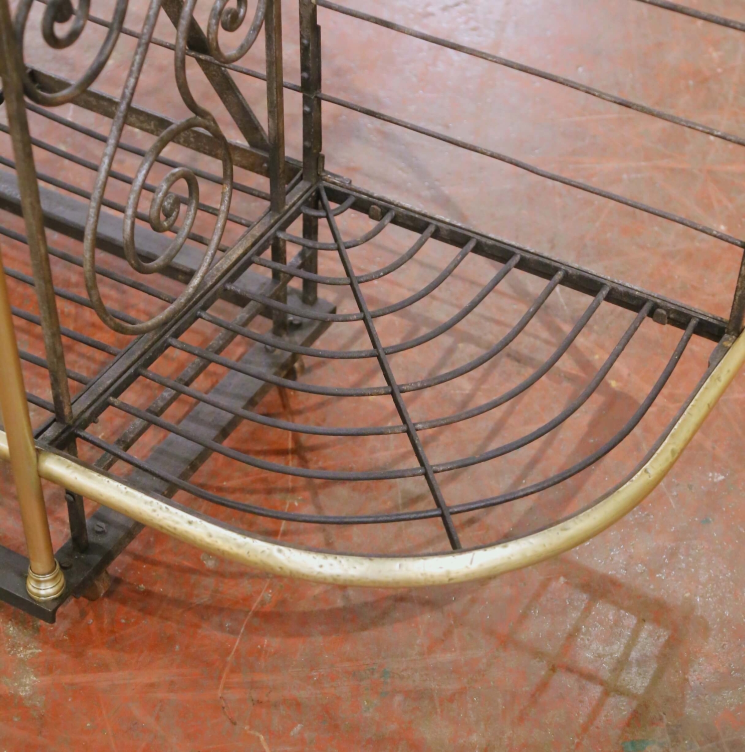 Early 20th Century French Wrought Iron and Brass Baker’s Rack on Wheels