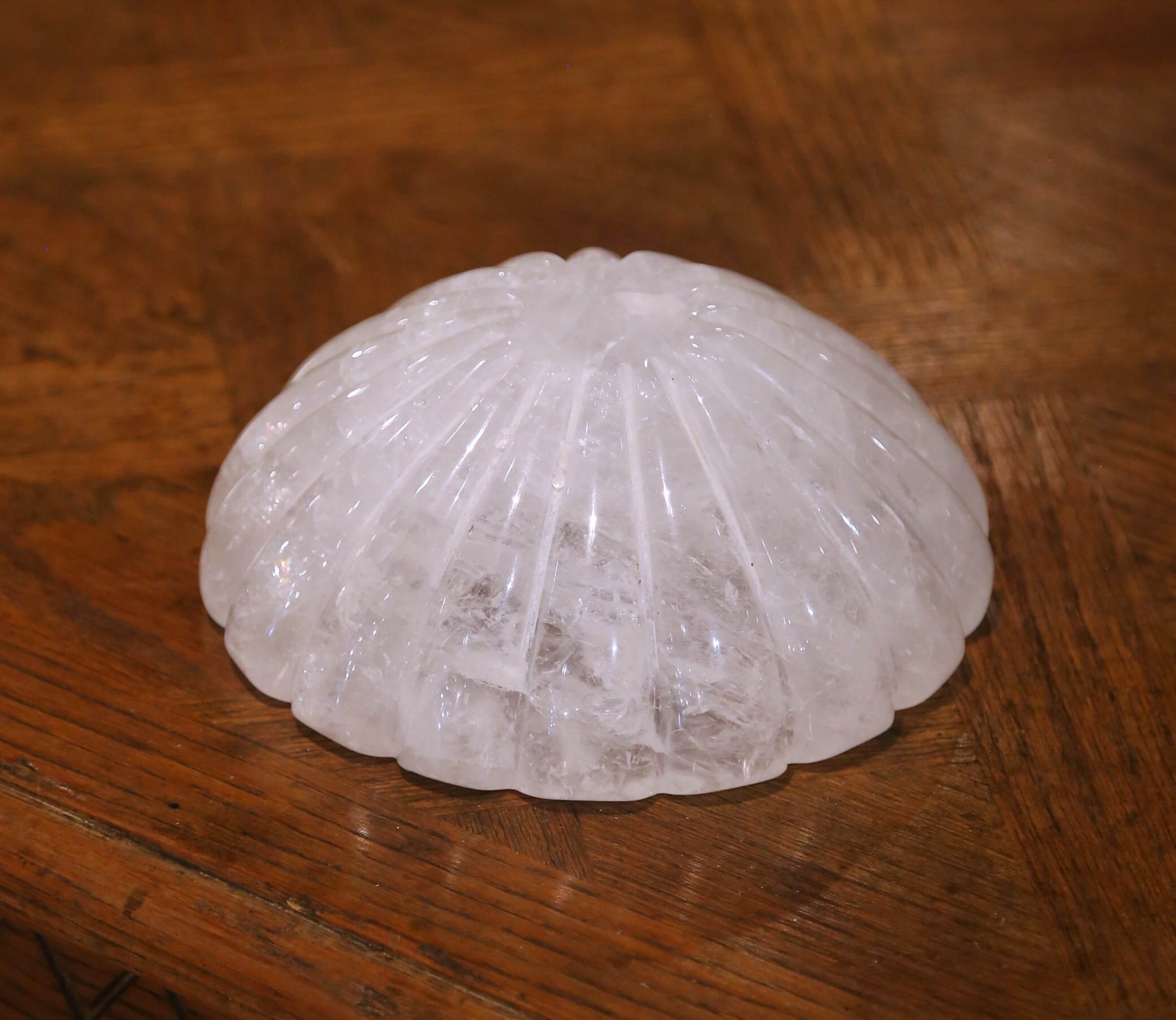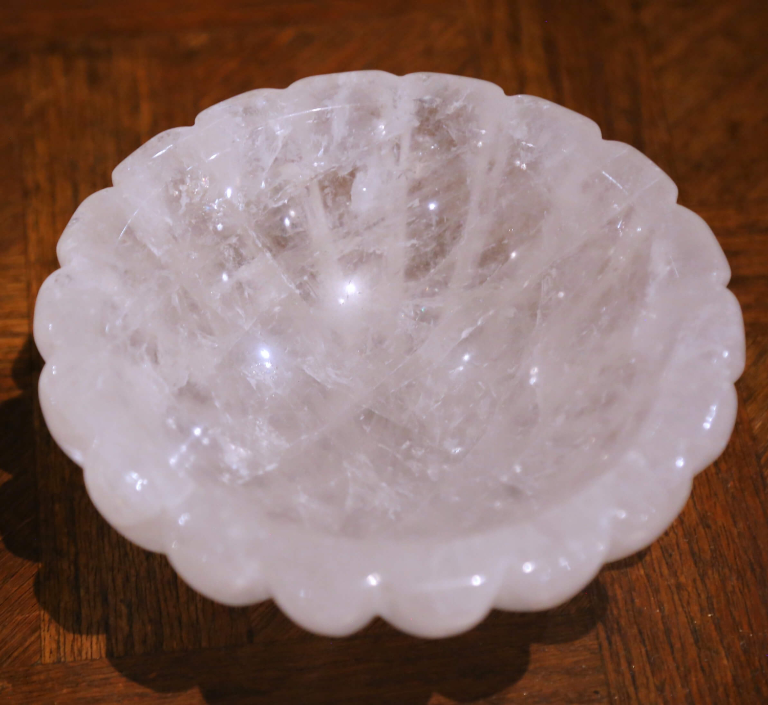 Hand-Carved Rock Crystal Bowl Vide-Poche from Brazil with Scalloped Design