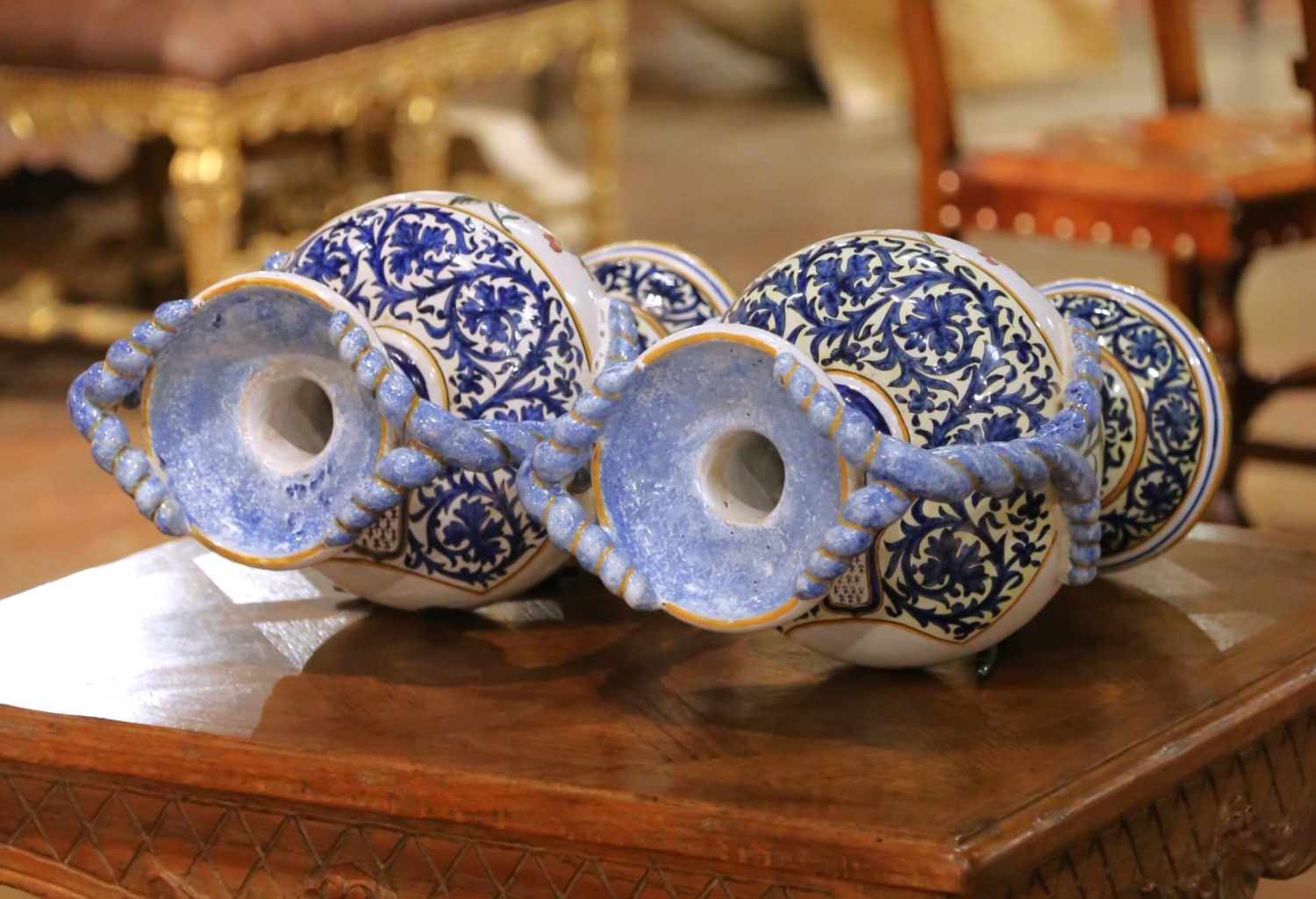Large Pair of 19th Century French Desvres Faience Urns with Twisted Handles