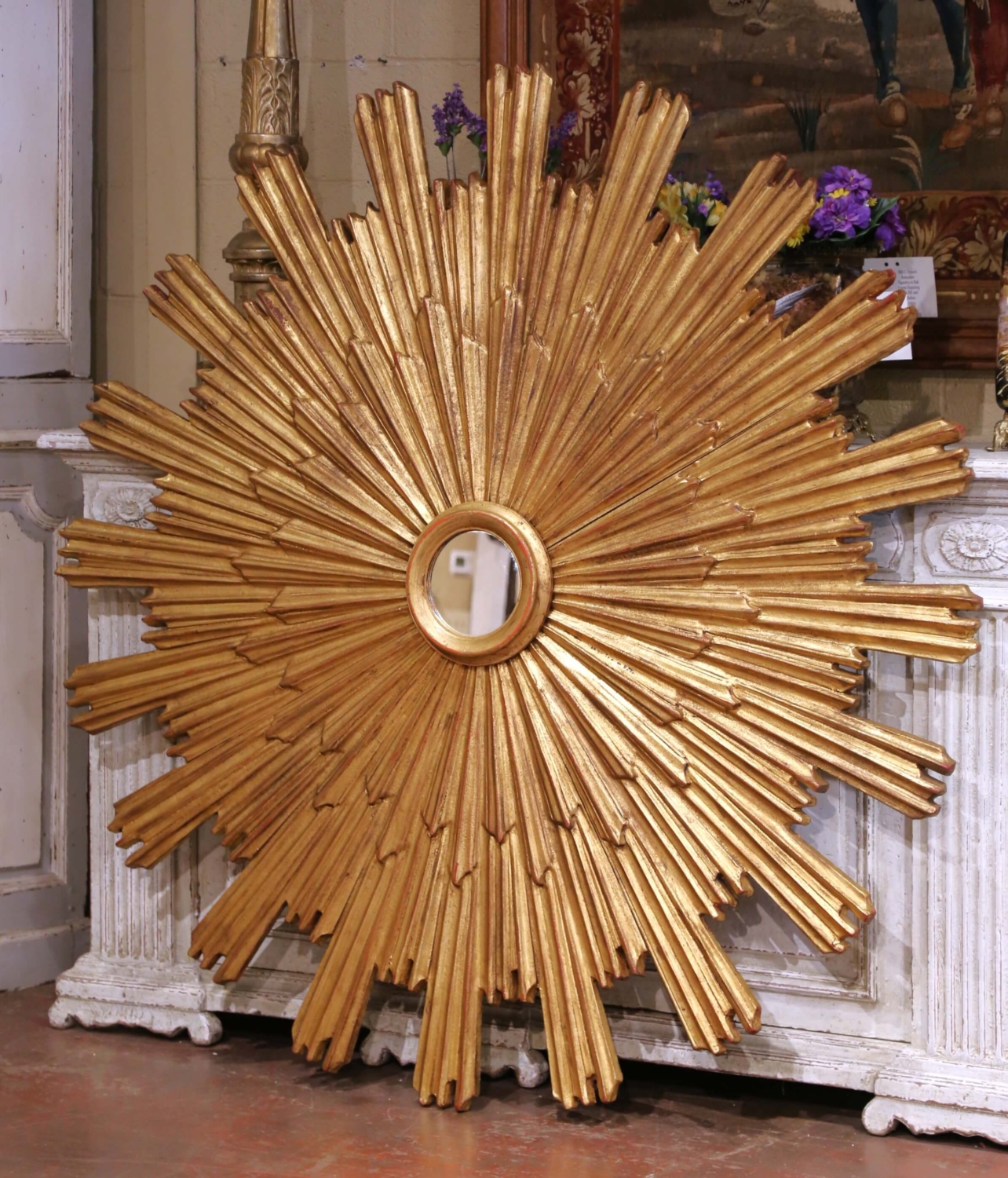 Large Vintage Italian Giltwood Sunburst Mirror with Layered Rays