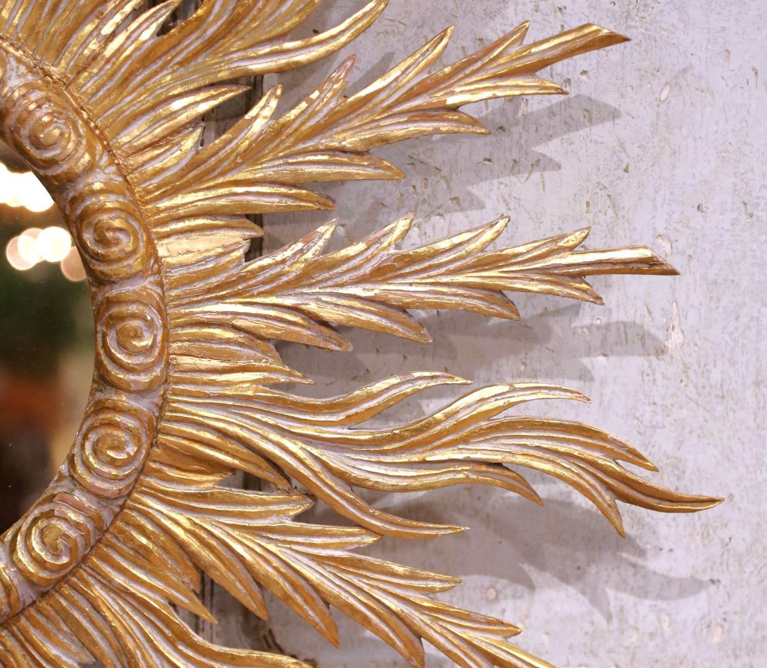 Mid-Century French Carved Sunburst Mirror with Gilt Finish