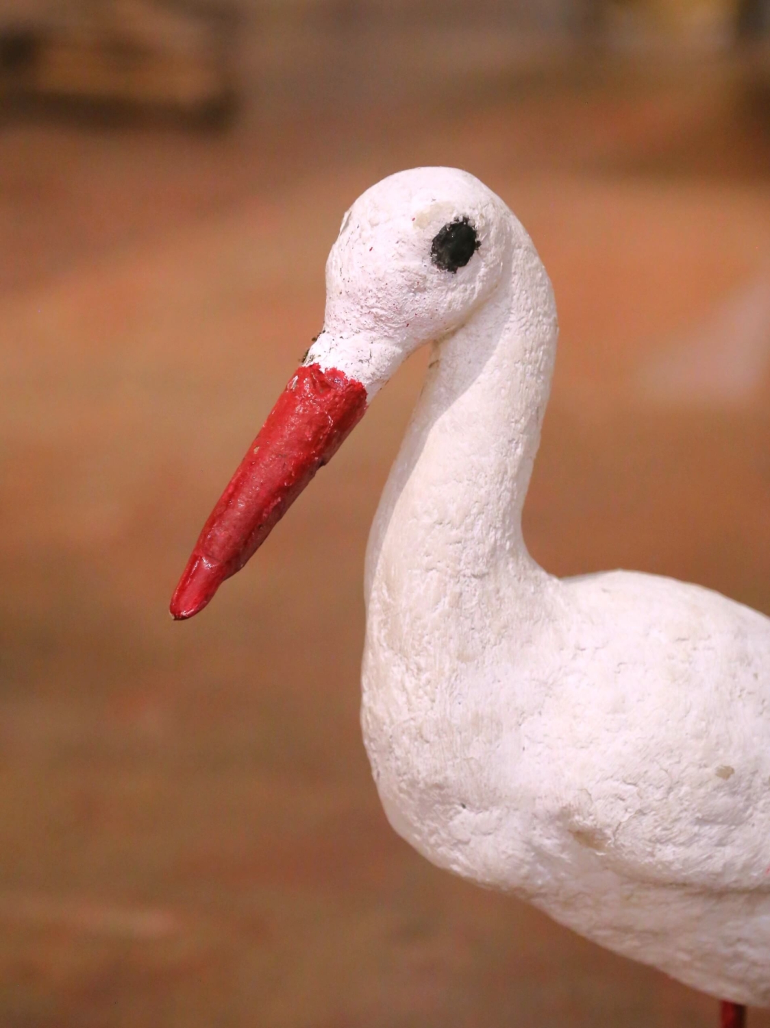 Mid-Century French Hand-Painted Concrete and Iron Stork Garden Sculpture