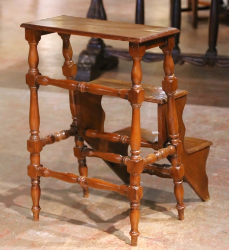 Mid-Century French Louis XIII Style Walnut Metamorphic Library Steps