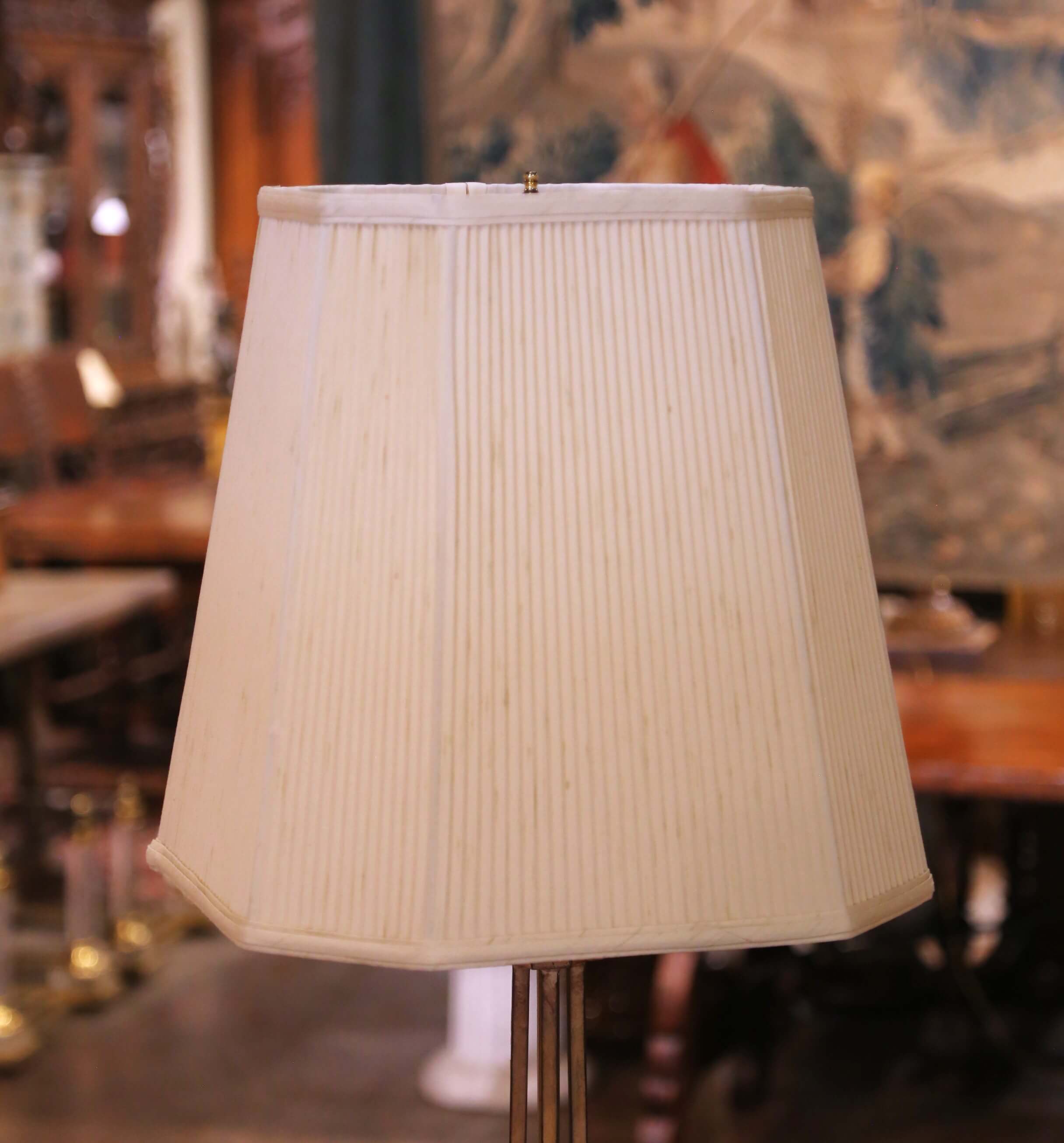 The lamp is dressed with a pleated fabric shade, which is included, and has been newly wired to US standards for modern use. This versatile “lampadaire guéridon” blends lighting and occasional table functionality, making it ideal beside a sofa or armchair.