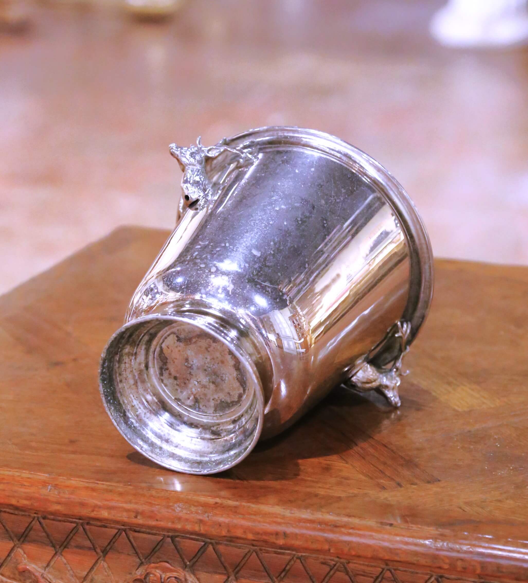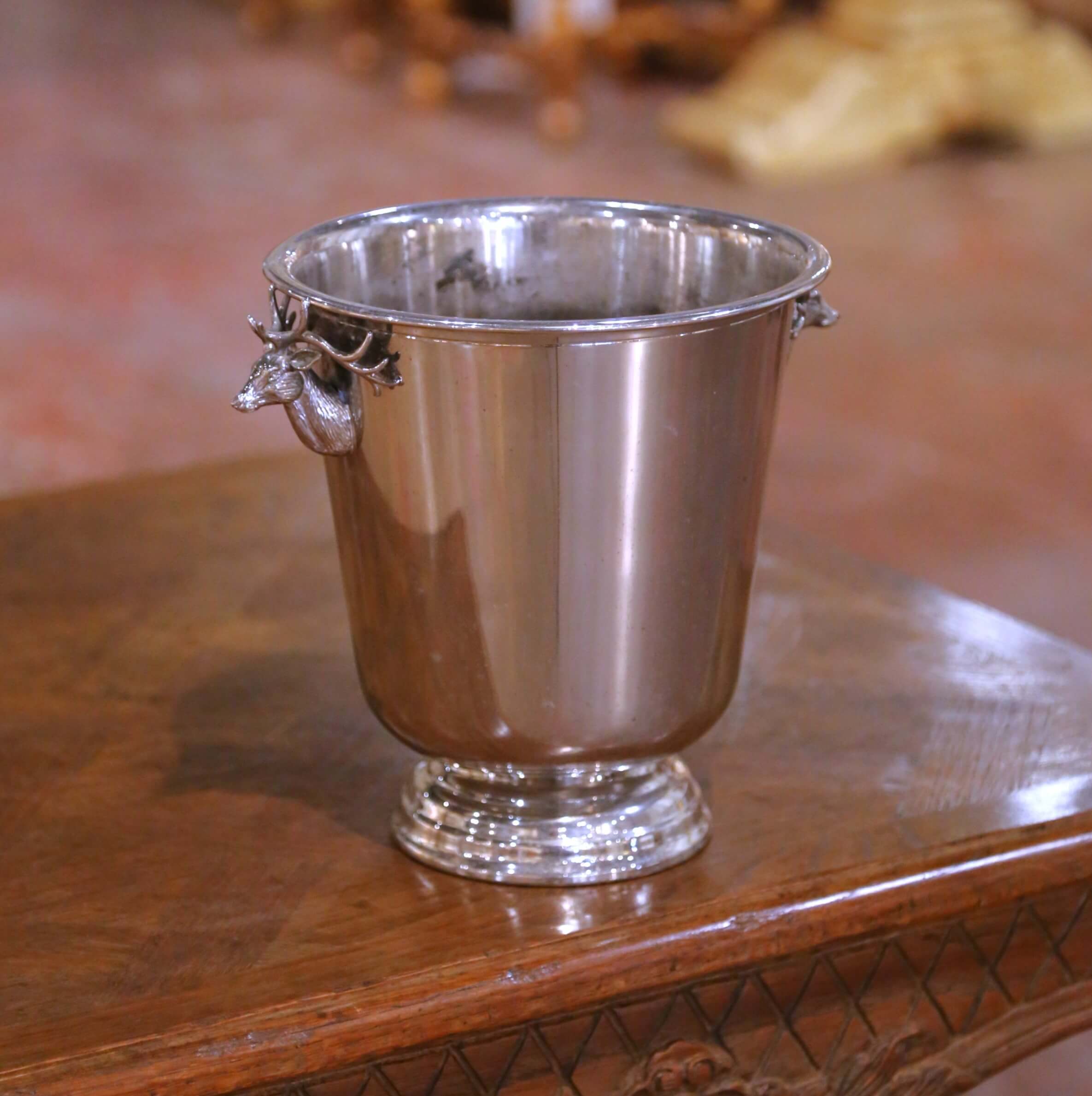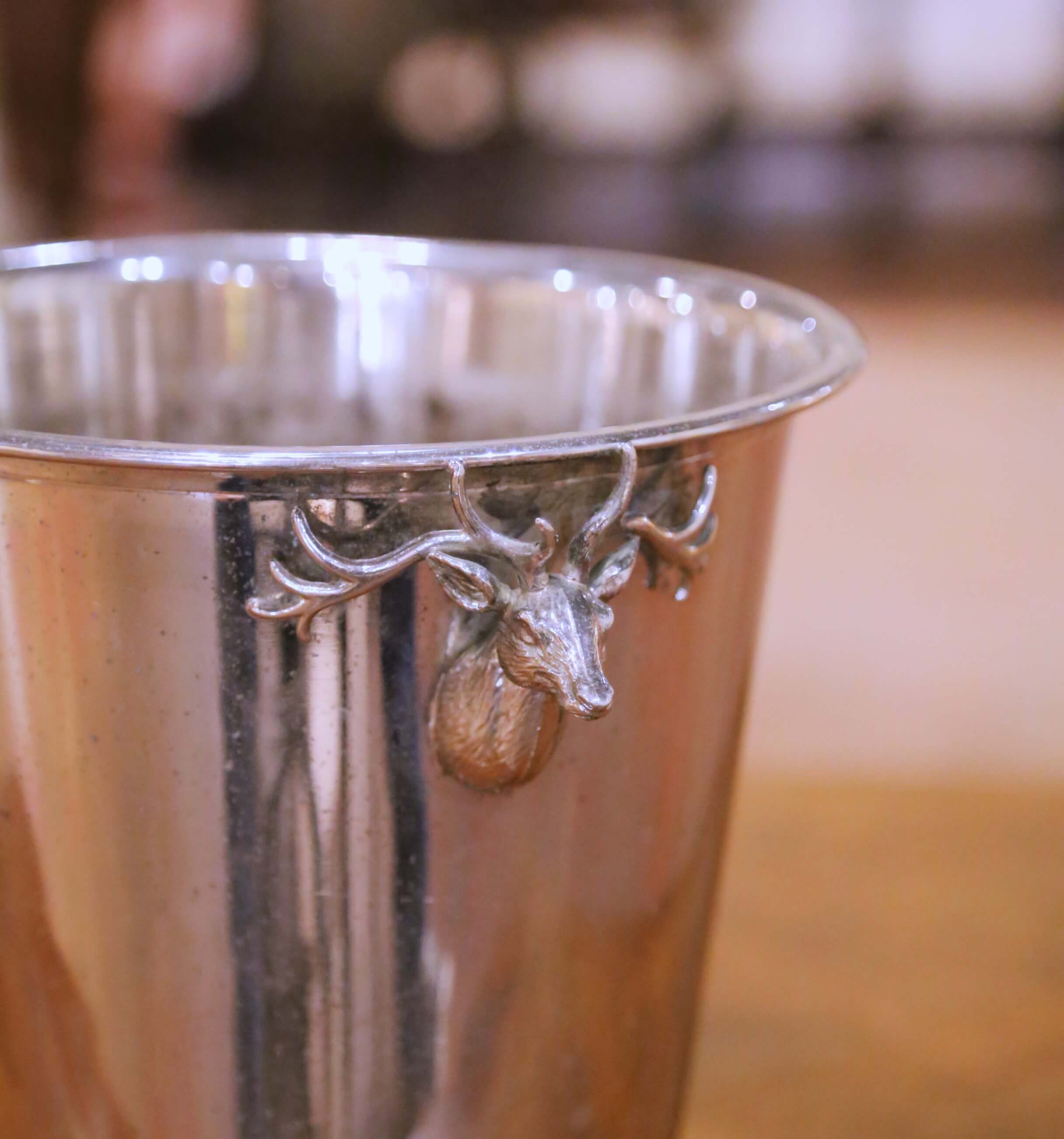 Mid-Century French Silvered Brass Champagne Bucket with Stag Heads