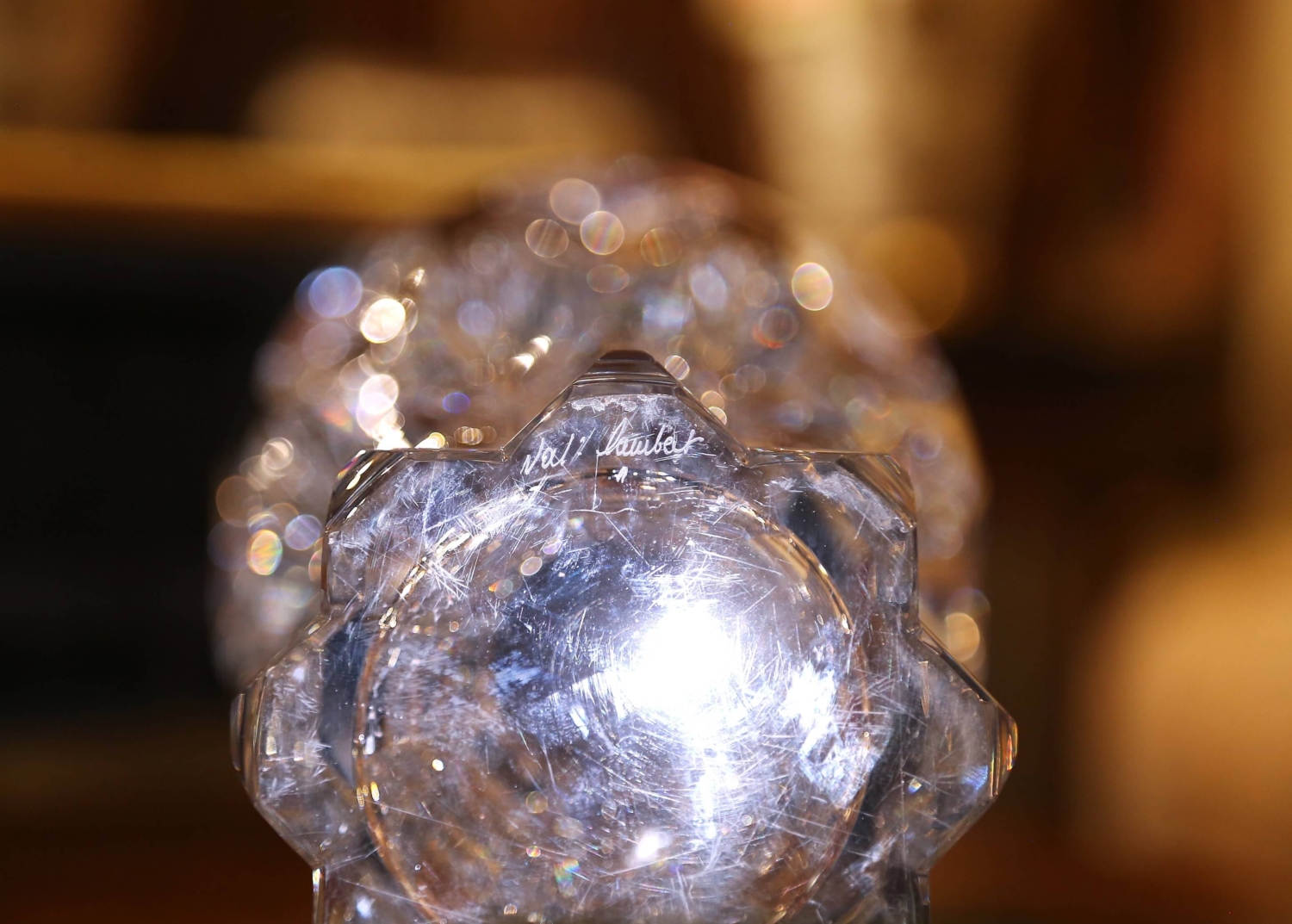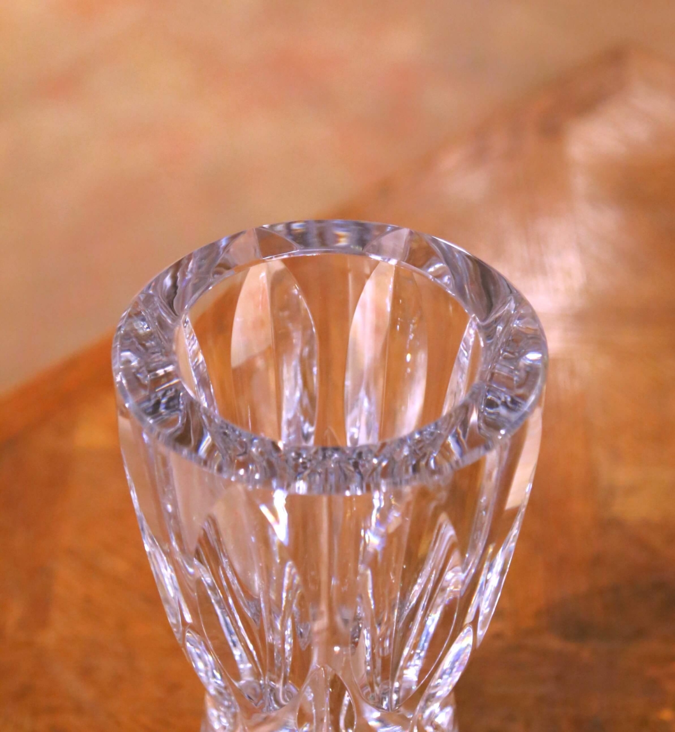 The underside bears the etched signature “Val St Lambert,” confirming its origin from the esteemed Belgian crystal house founded in 1826 and celebrated for craftsmanship comparable to Baccarat and Saint-Louis. The vase is in excellent condition commensurate with age and use, with minor wear to the base consistent with handling. Versatile and timeless, it can be used as a bud vase, a small decorative vessel, or displayed alone to highlight its brilliance and form.