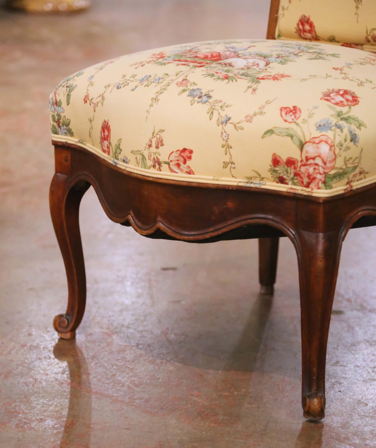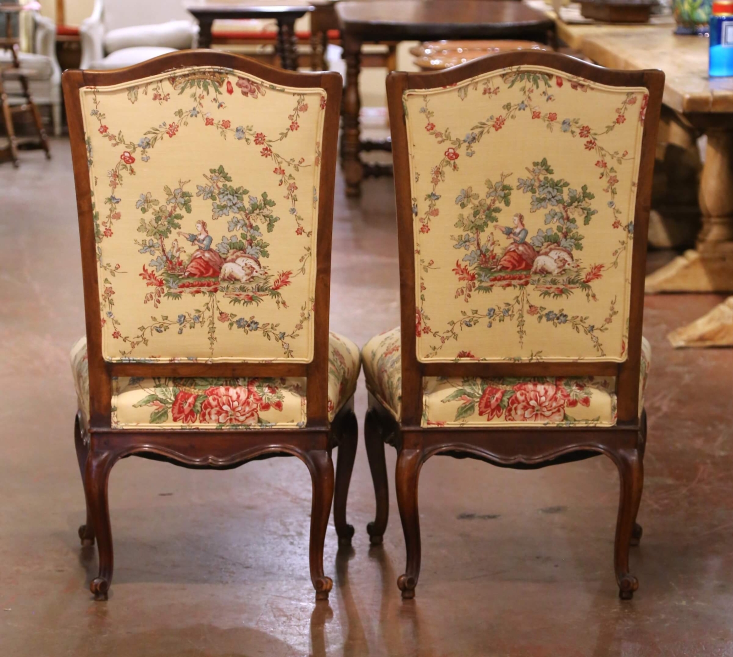 Pair 19th Century French Louis XV Walnut Side Chairs with Provençal Upholstery