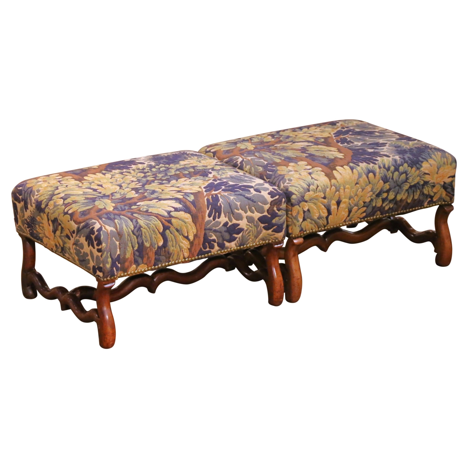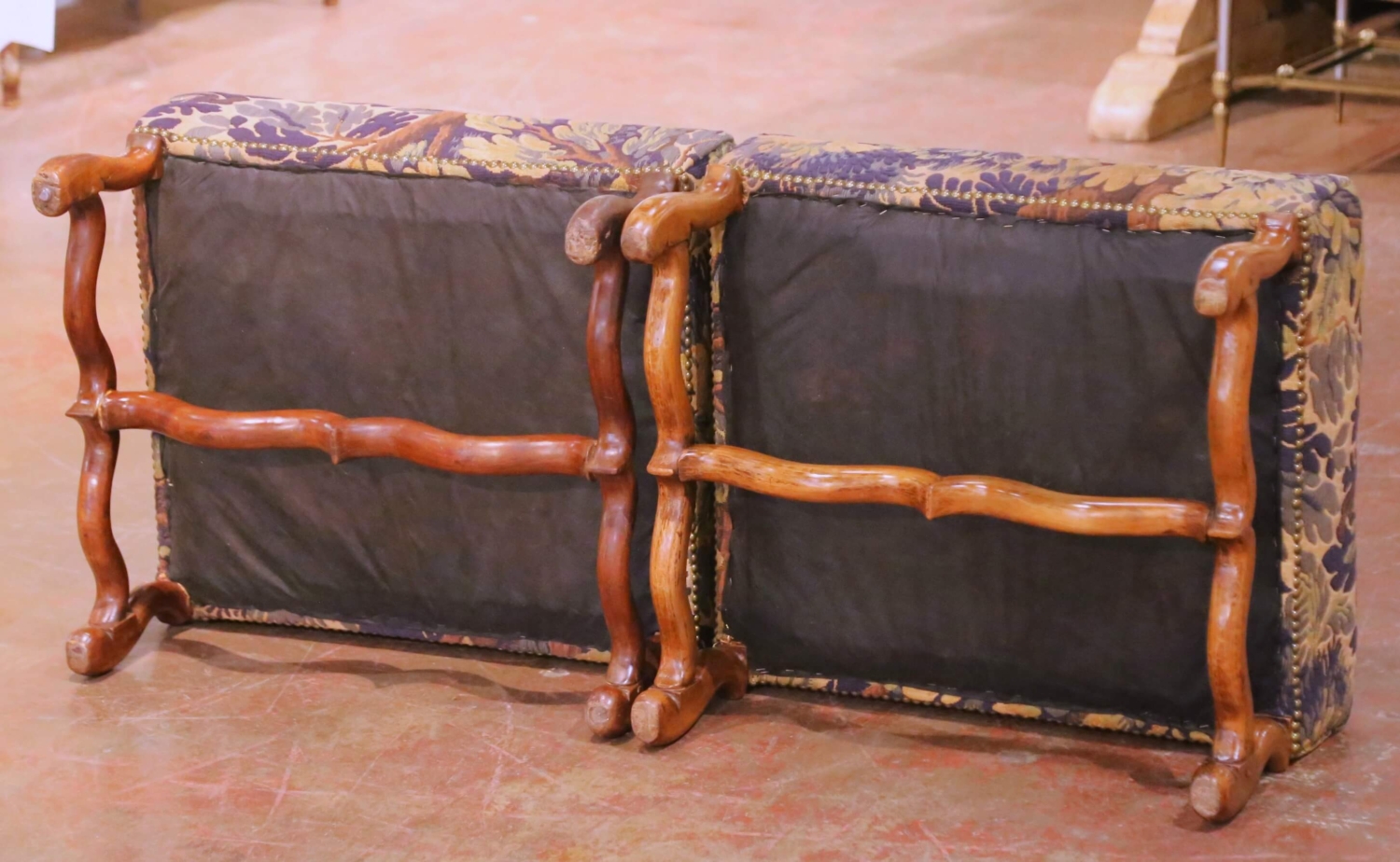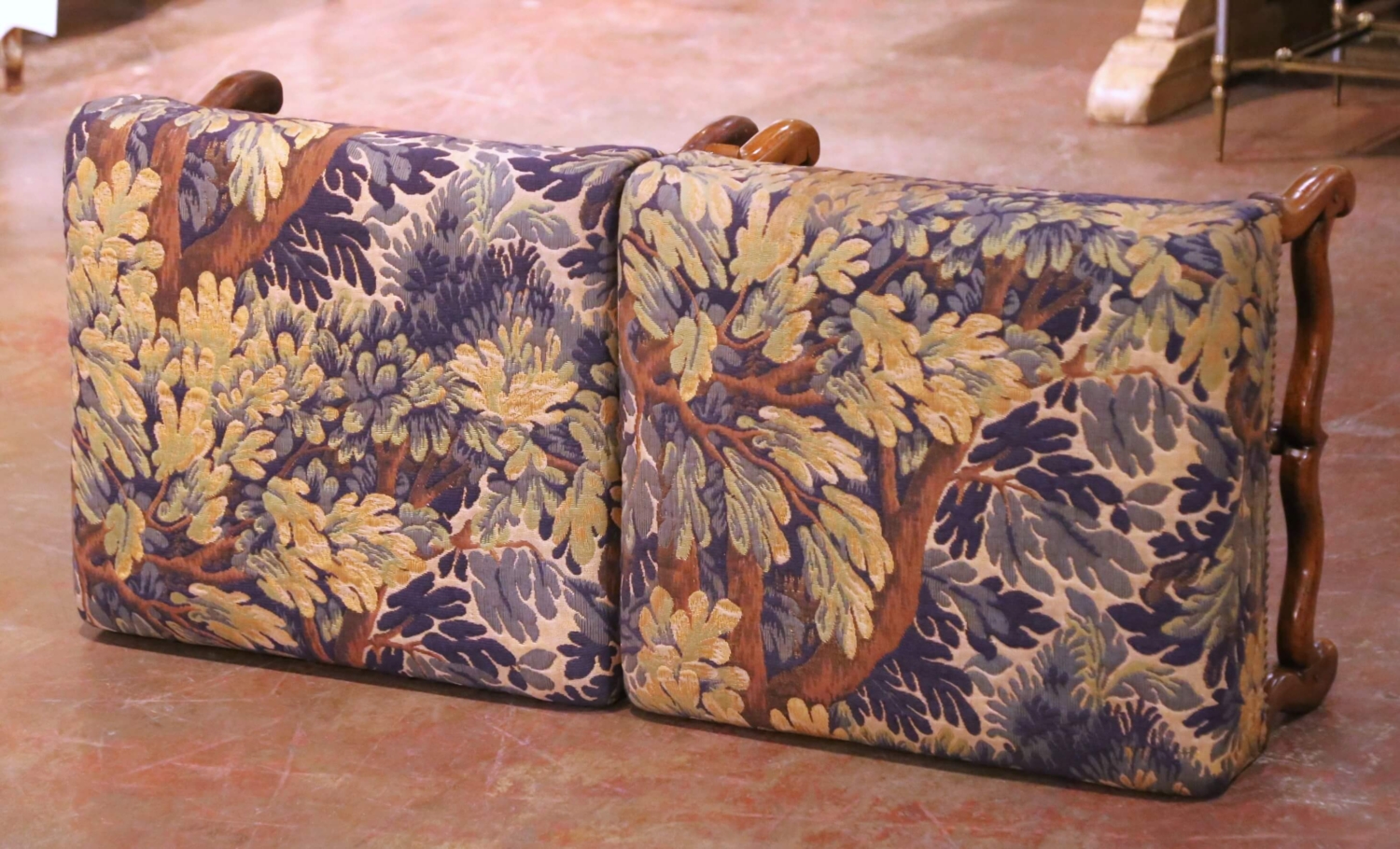 Pair of 19th Century French Louis XIII Walnut Stools with Tapestry Upholstery