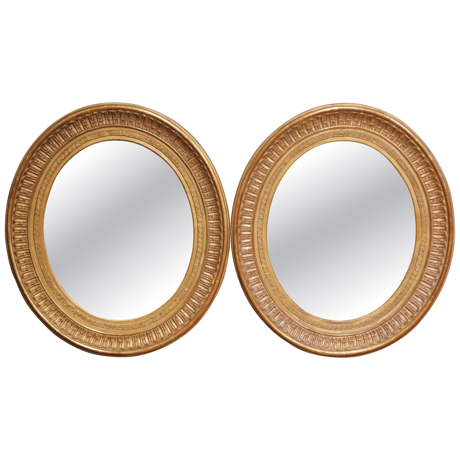 Pair of 19th Century French Louis XVI Oval Giltwood Wall Mirrors