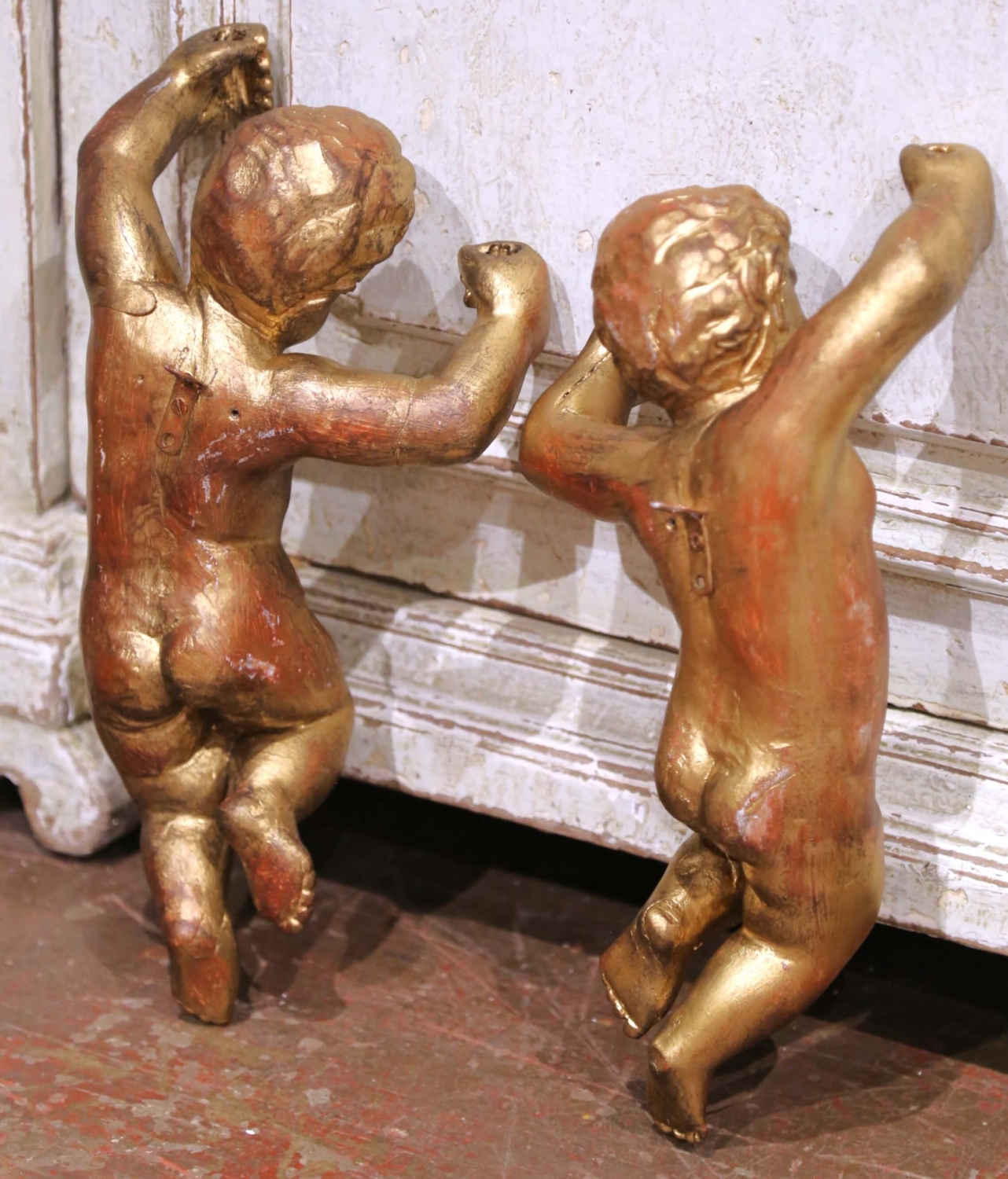 Pair of 19th Century Italian Giltwood Wall-Hanging Cherub Sculptures